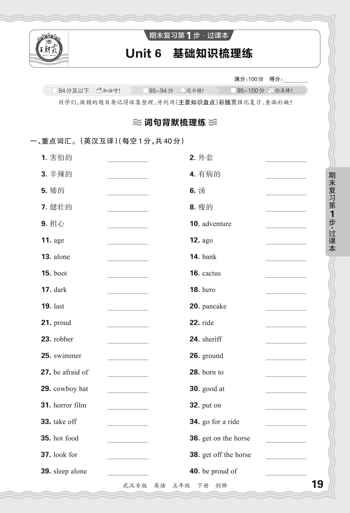 2024春下册五年级英语剑桥版 期末过课本武汉版·Unit 6 基础知识梳理练