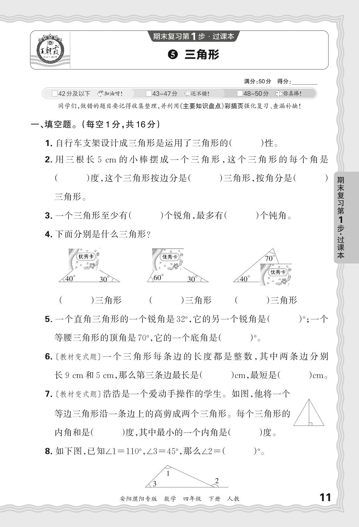 2024春下册四年级数学人教版 期末过课本安阳濮阳版·三角形【5】