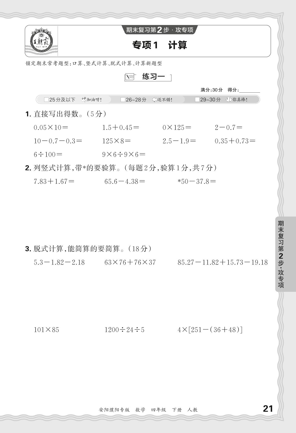 2024春下册四年级数学人教版 期末专项卷安阳濮阳版·计算【1】