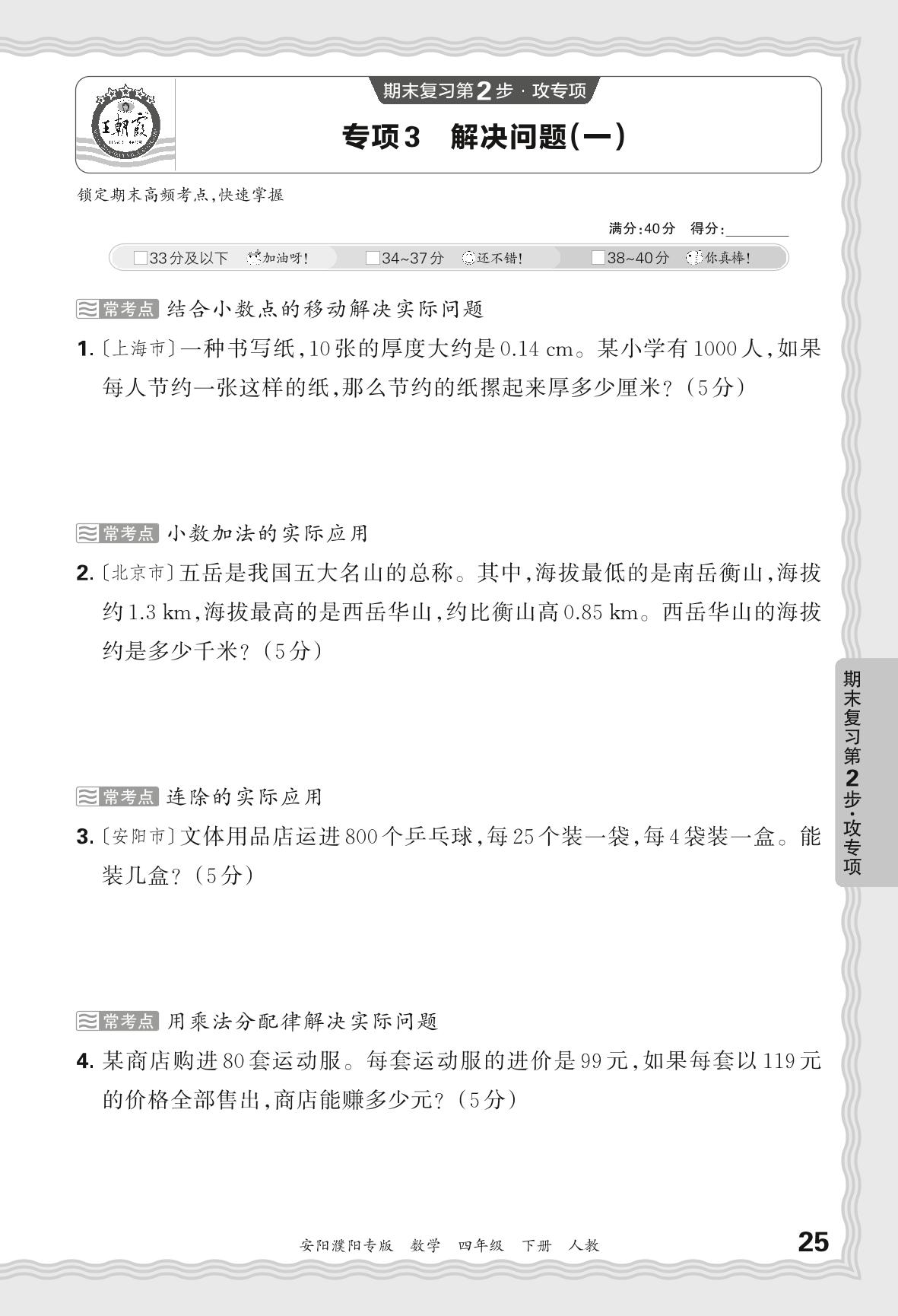 2024春下册四年级数学人教版 期末专项卷安阳濮阳版·解决问题(一)【3】