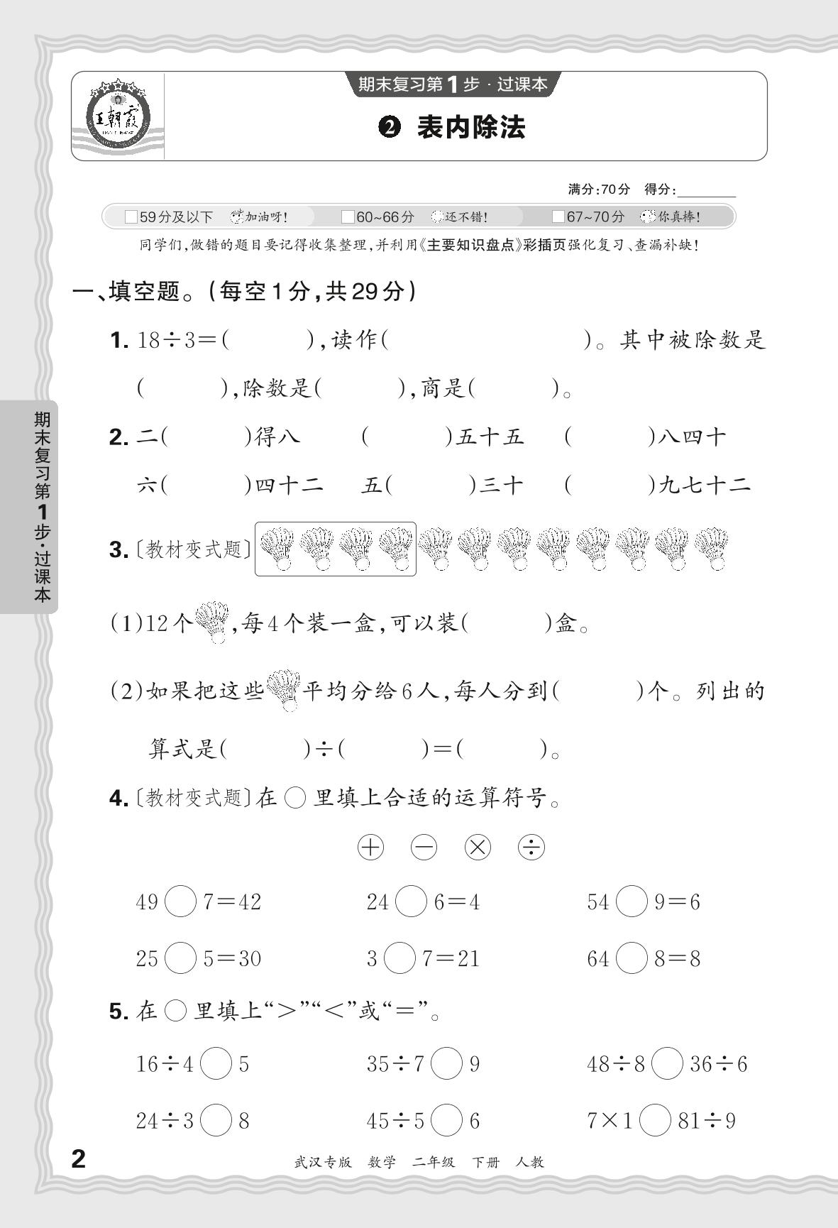 2024春下册二年级数学人教版 期末过课本武汉版·表内除法