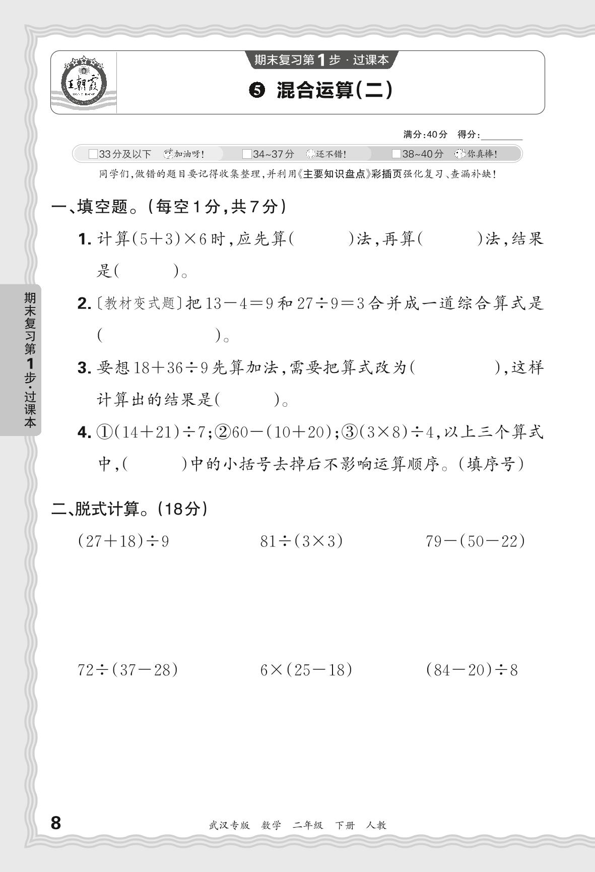 2024春下册二年级数学人教版 期末过课本武汉版·混合运算(二)