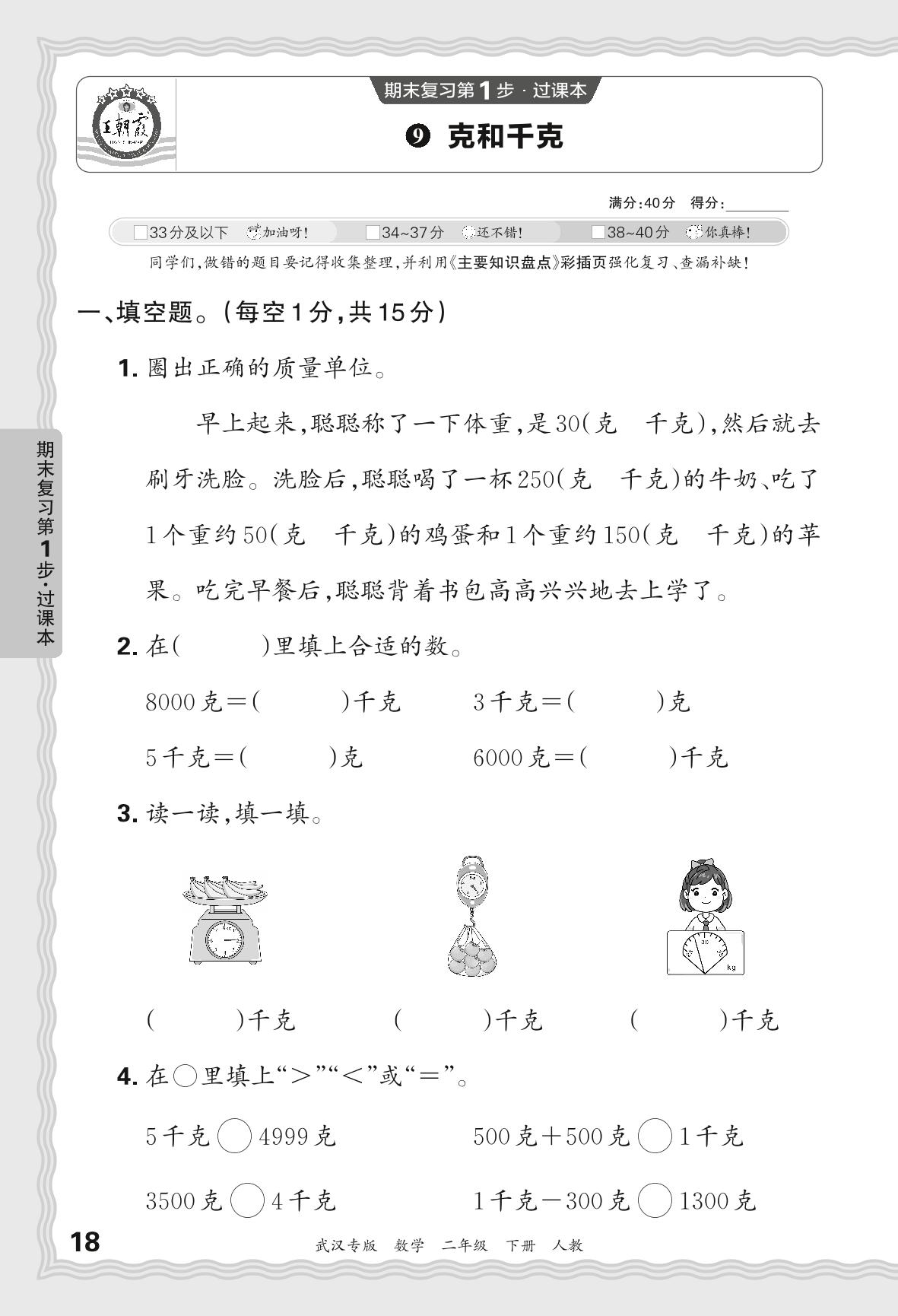 2024春下册二年级数学人教版 期末过课本武汉版·克和千克