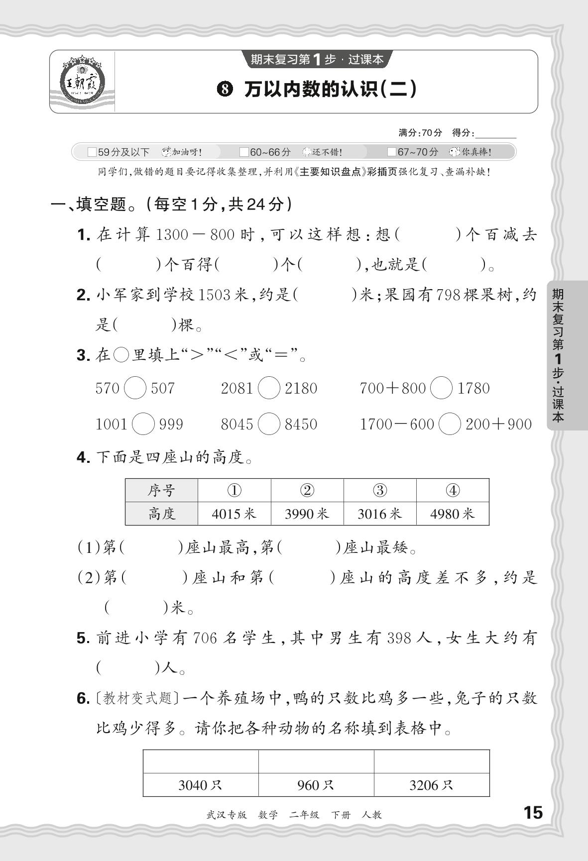 2024春下册二年级数学人教版 期末过课本武汉版·万以内数的认识(二)