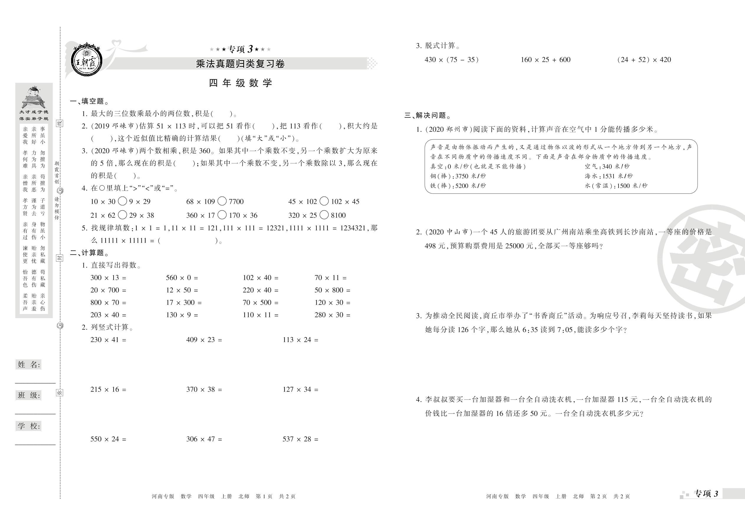 王朝霞期末专项卷——乘法、运算律真题归类复习四年级上册数学(北师版)【0】