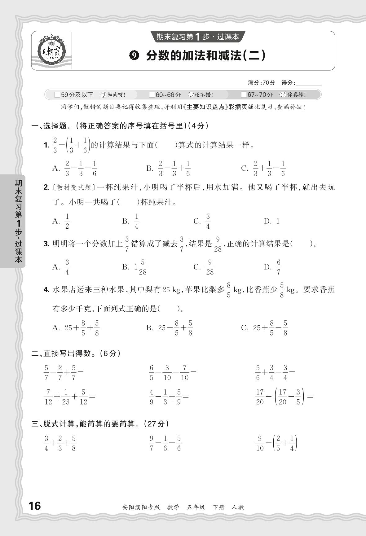2024春下册五年级数学人教版 期末过课本安阳濮阳版·分数的加法和减法(二)【9】