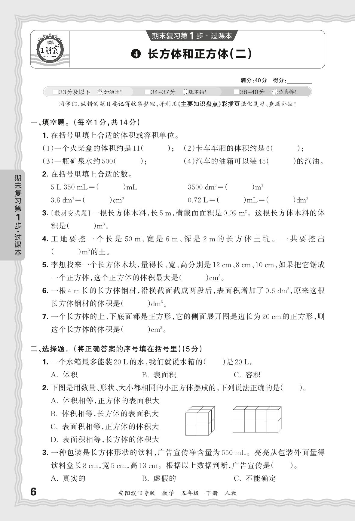 2024春下册五年级数学人教版 期末过课本安阳濮阳版·长方体和正方体(二)【4】