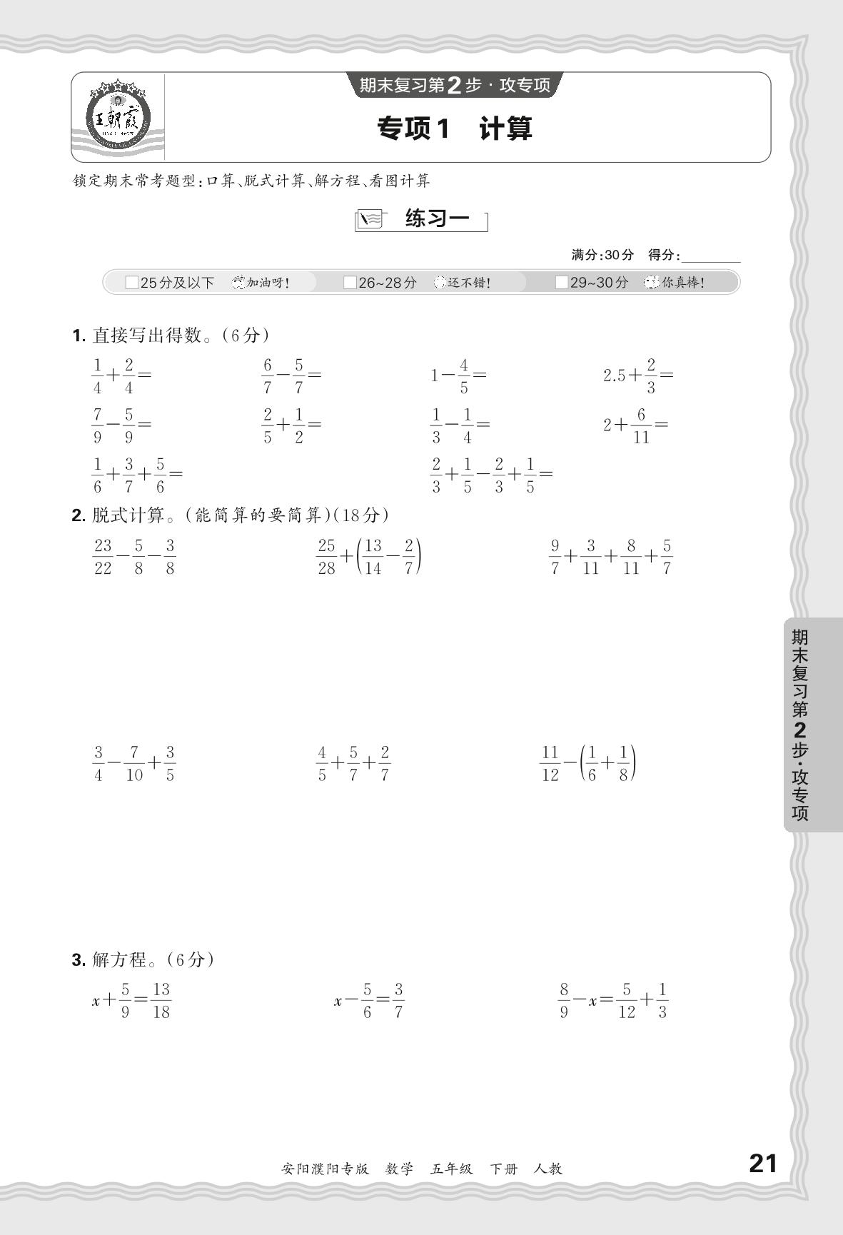 2024春下册五年级数学人教版 期末专项卷安阳濮阳版·计算【1】