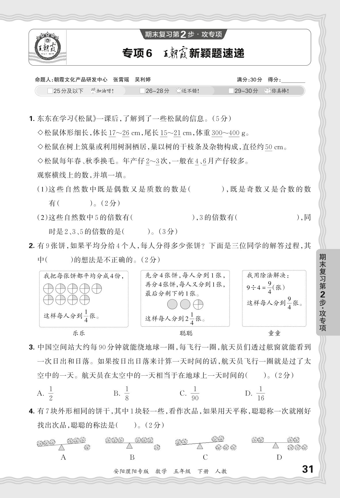 2024春下册五年级数学人教版 期末专项卷安阳濮阳版·王朝霞新颖题速递【6】