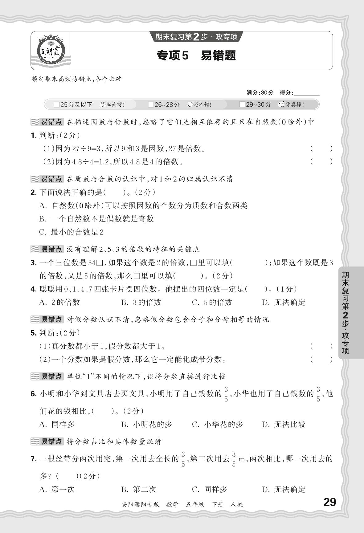 2024春下册五年级数学人教版 期末专项卷安阳濮阳版·易错题【5】
