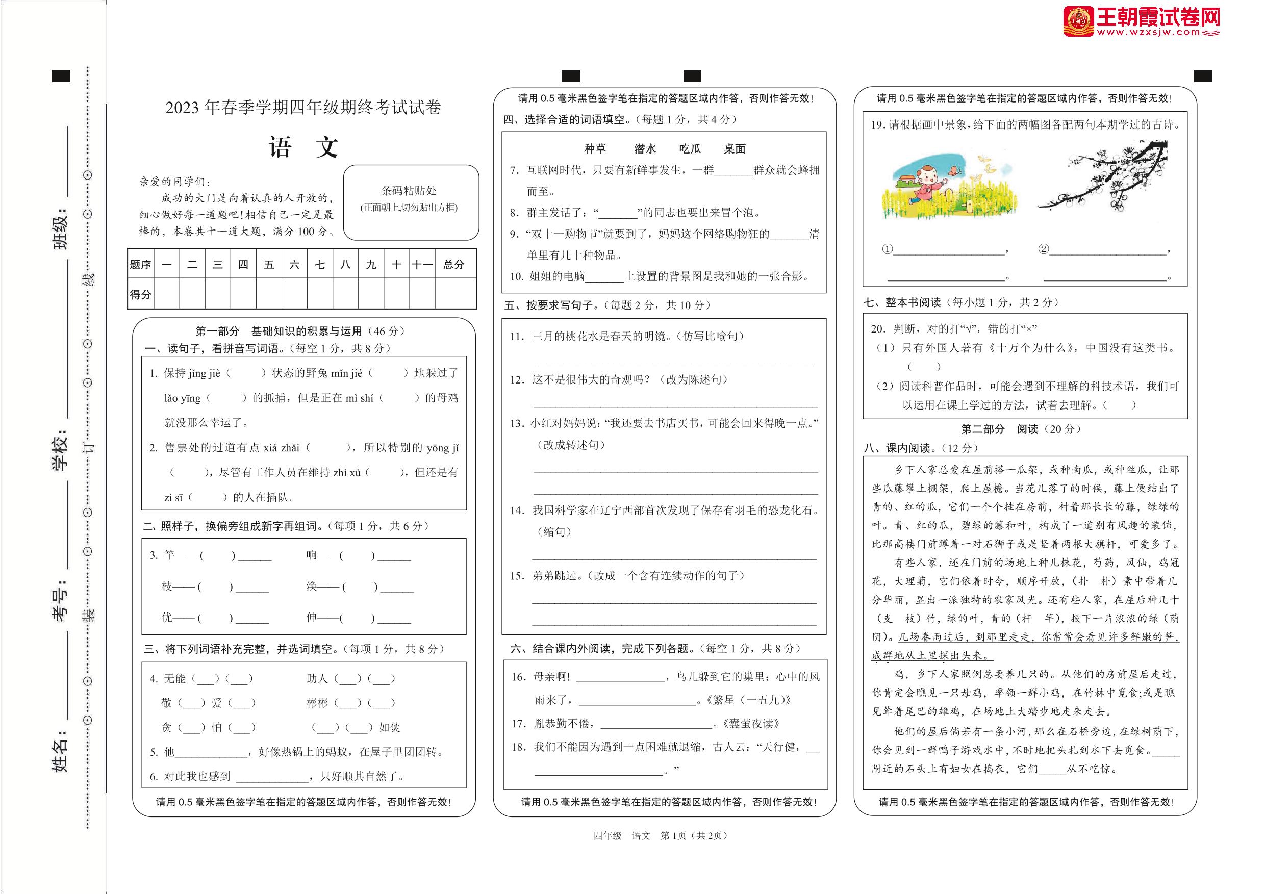 四年级语文人教版下册期末卷