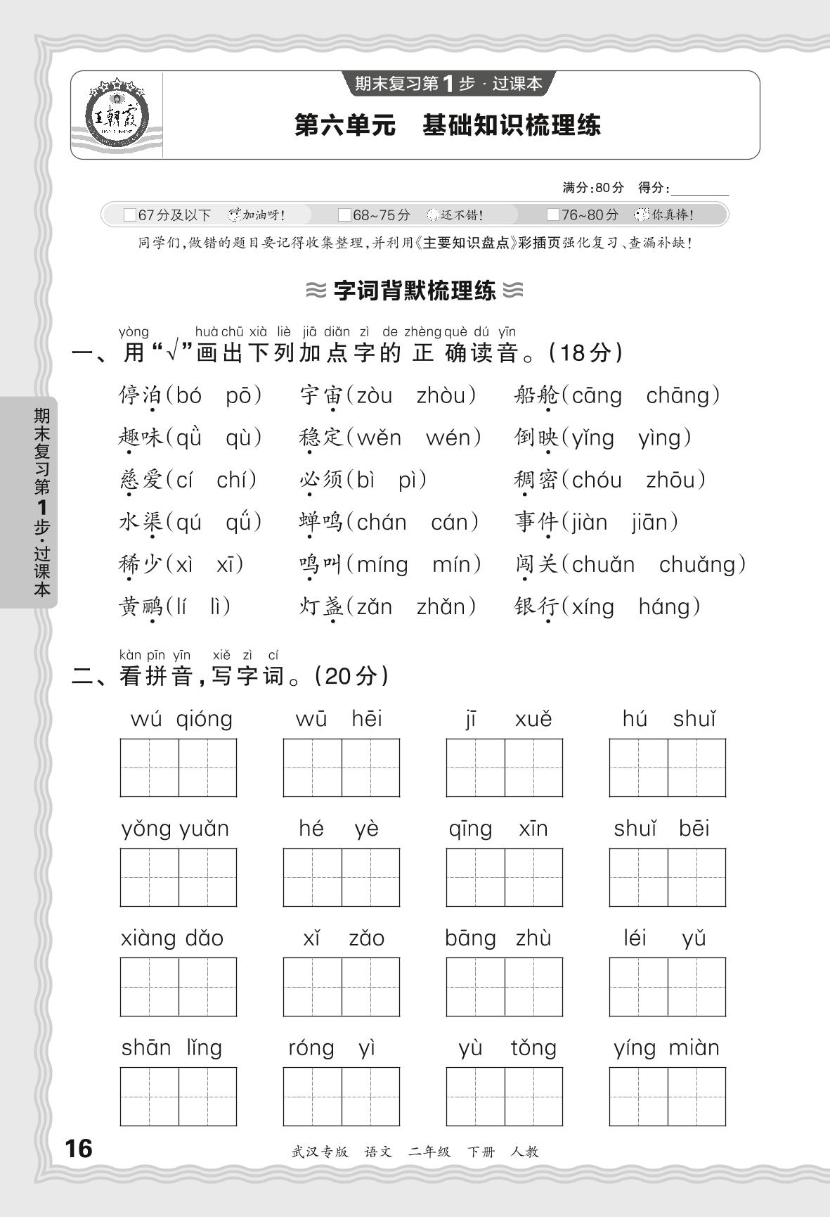 2024春下册二年级语文人教版 期末过课本武汉版·第六单元基础知识梳理练