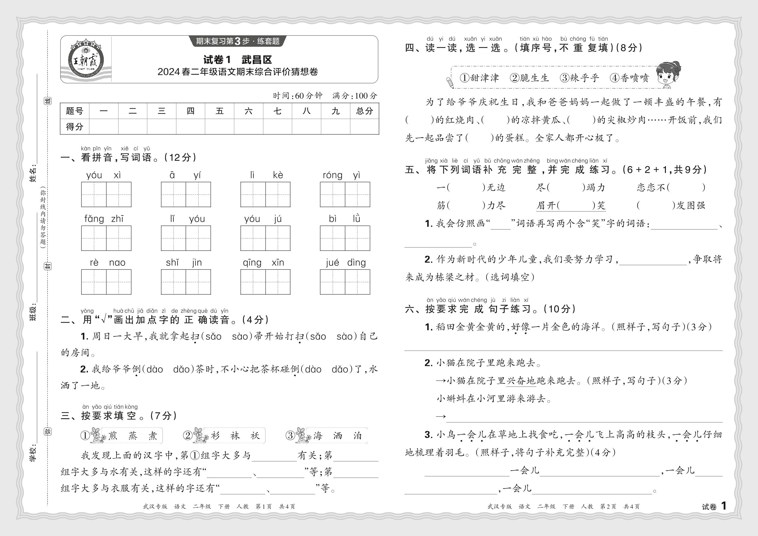湖北省武汉市武昌区2024春二年级语文期末综合评价猜想卷(人教版)