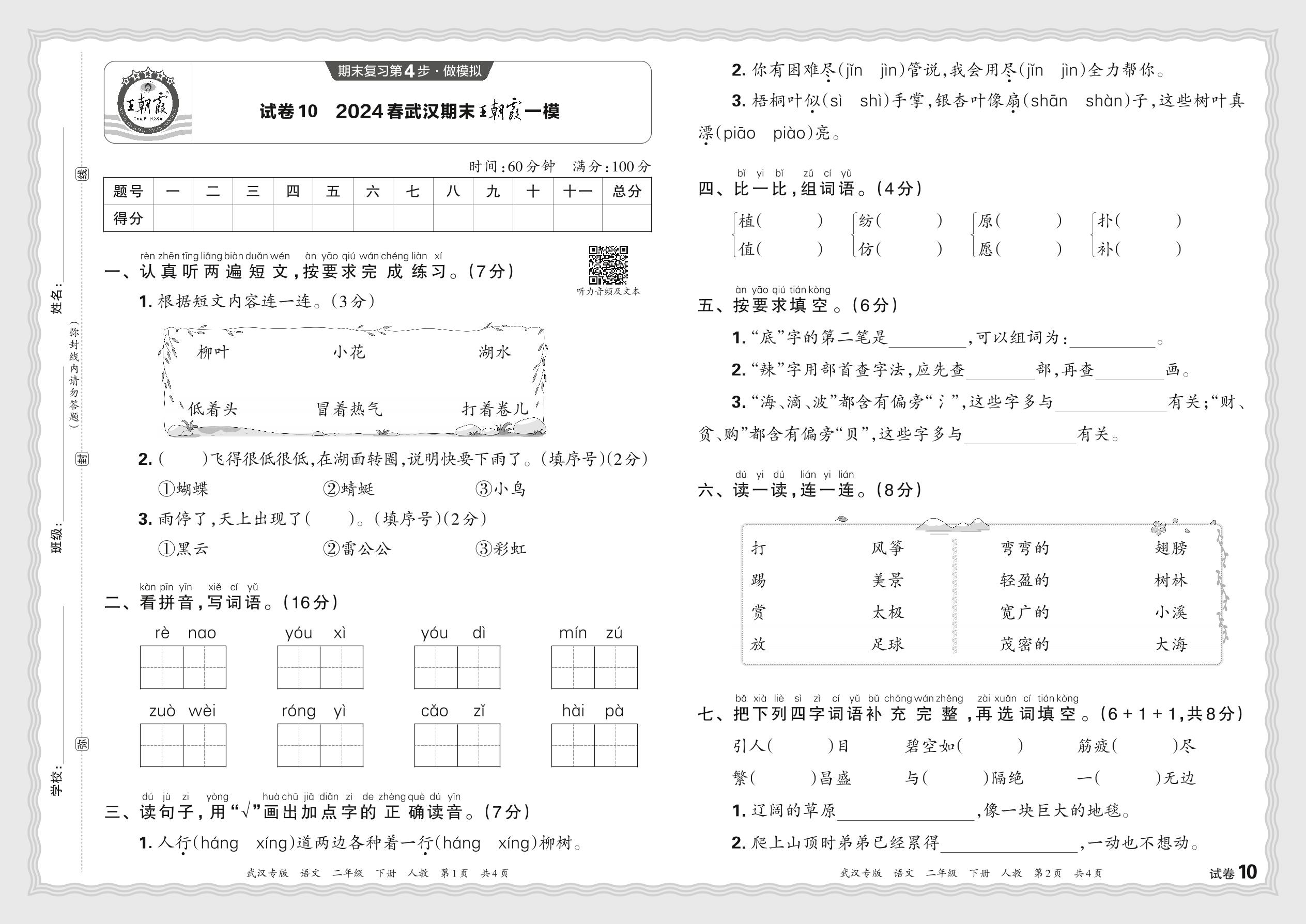 2024春下册二年级语文人教版 湖北武汉期末王朝霞一模