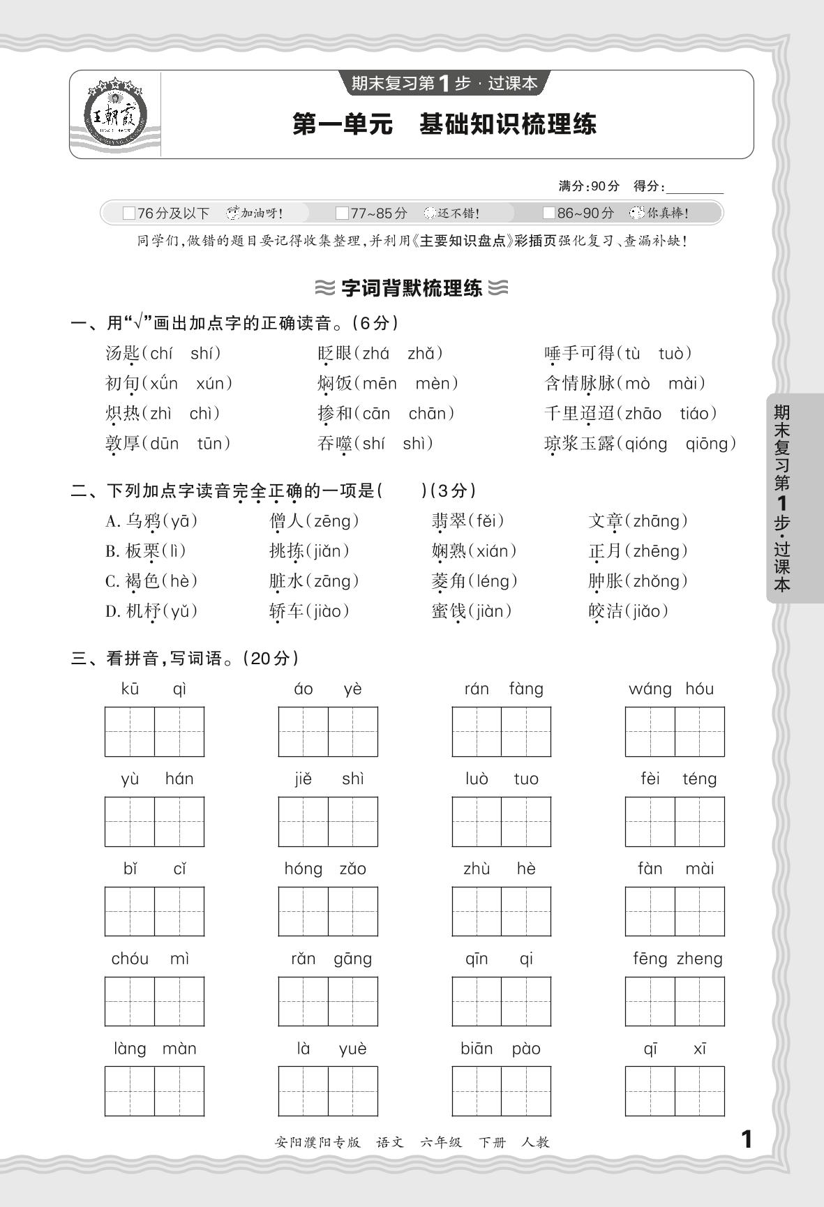 2024春下册六年级语文人教版 期末过课本安阳濮阳版·第一单元 基础知识梳理练