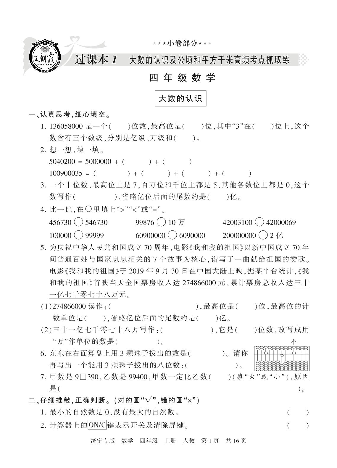 王朝霞期末过课本四年级上册数学(人教版)_R210804141011【0】