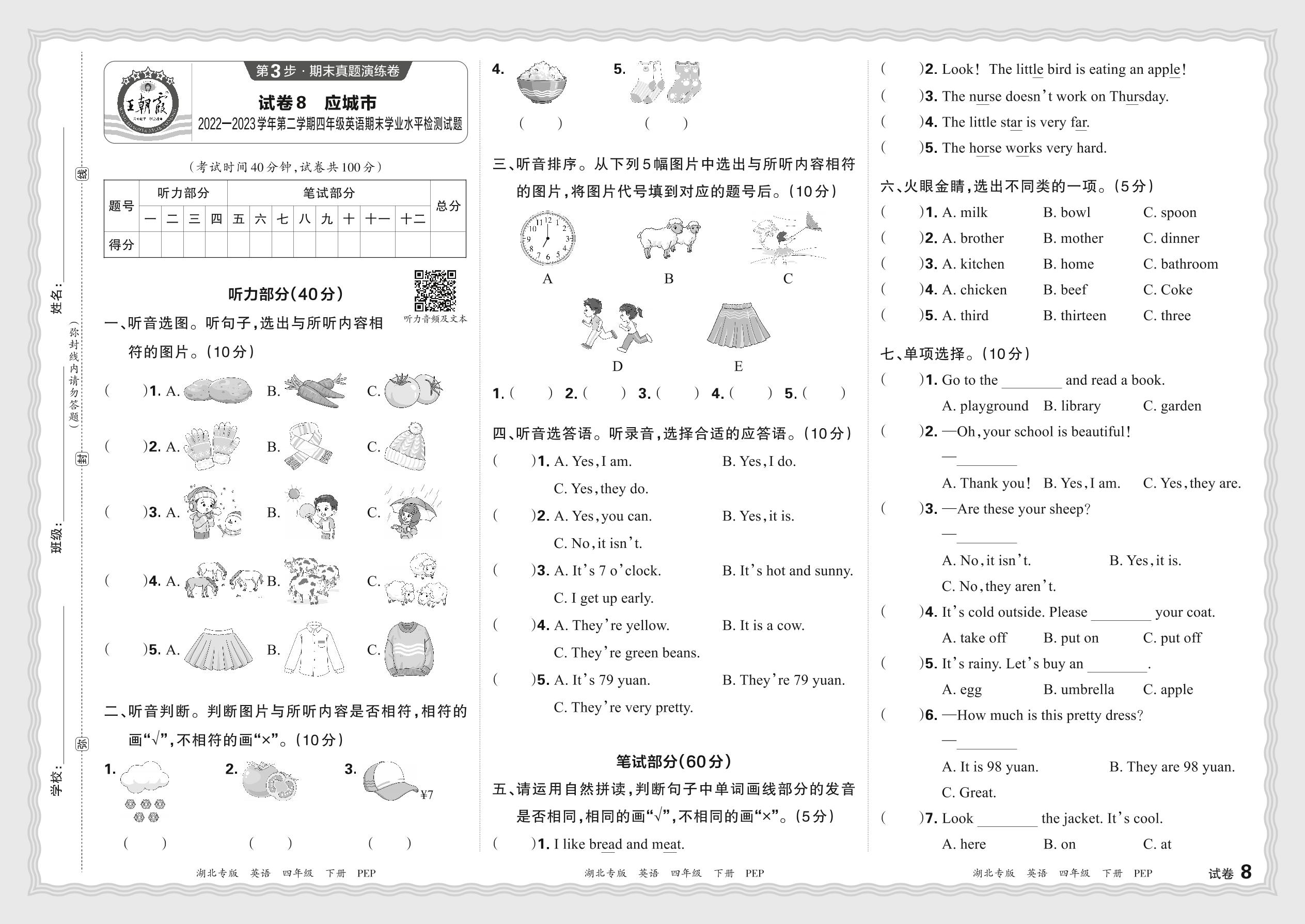 湖北省孝感市应城市2022—2023学年第二学期四年级英语期末学业水平检测试题(人教PEP版)【8】