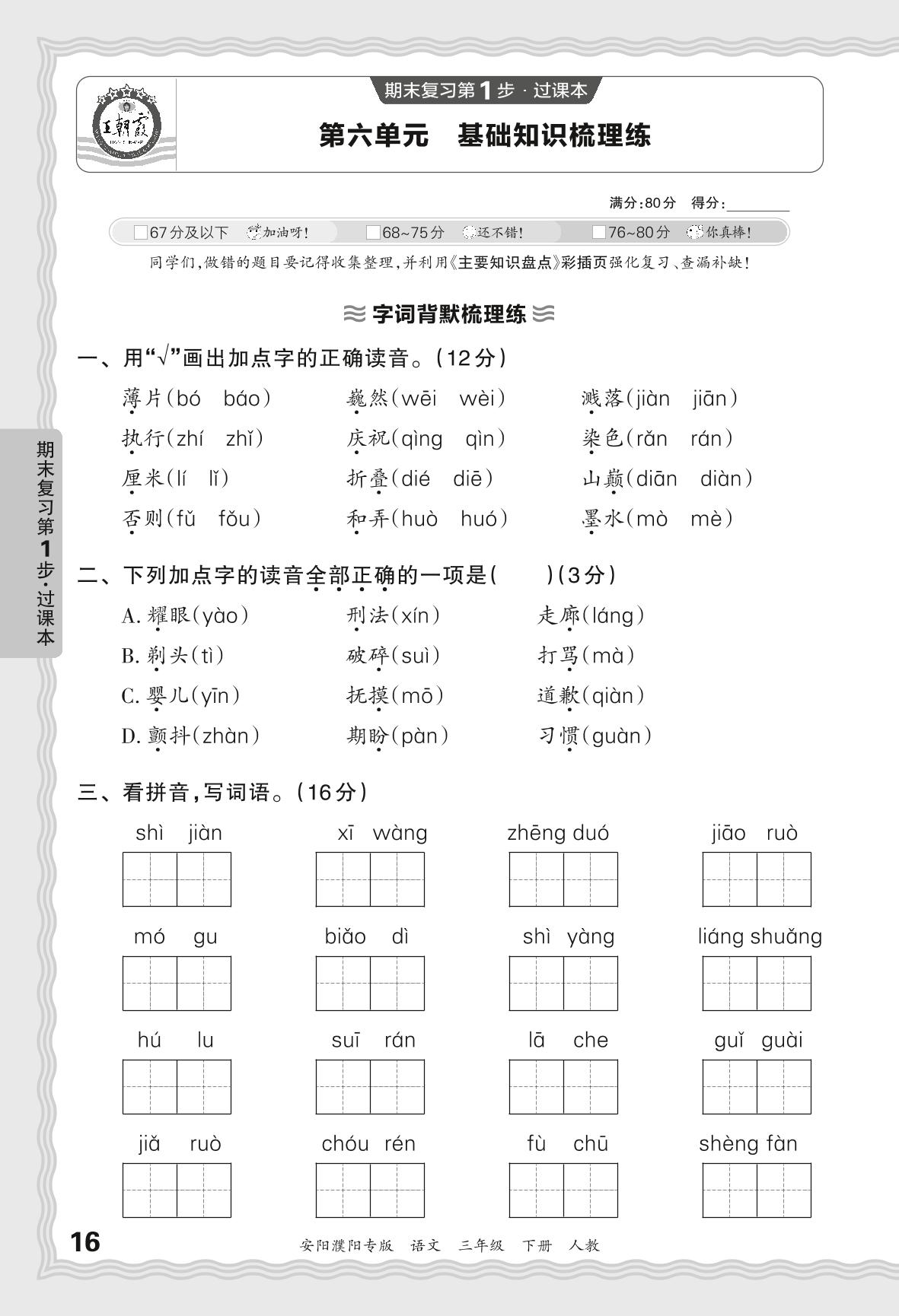 2024春下册三年级语文人教版 期末过课本安阳濮阳版·第六单元 基础知识梳理练
