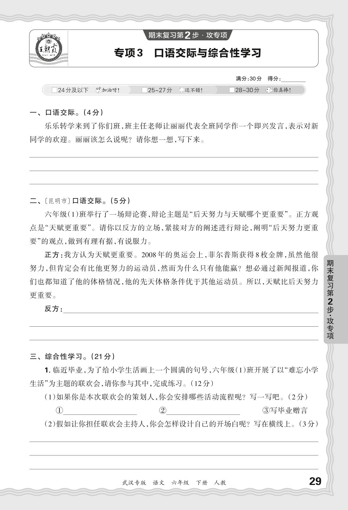 2024春下册六年级语文人教版 期末专项卷武汉版·口语交际与综合性学习【3】