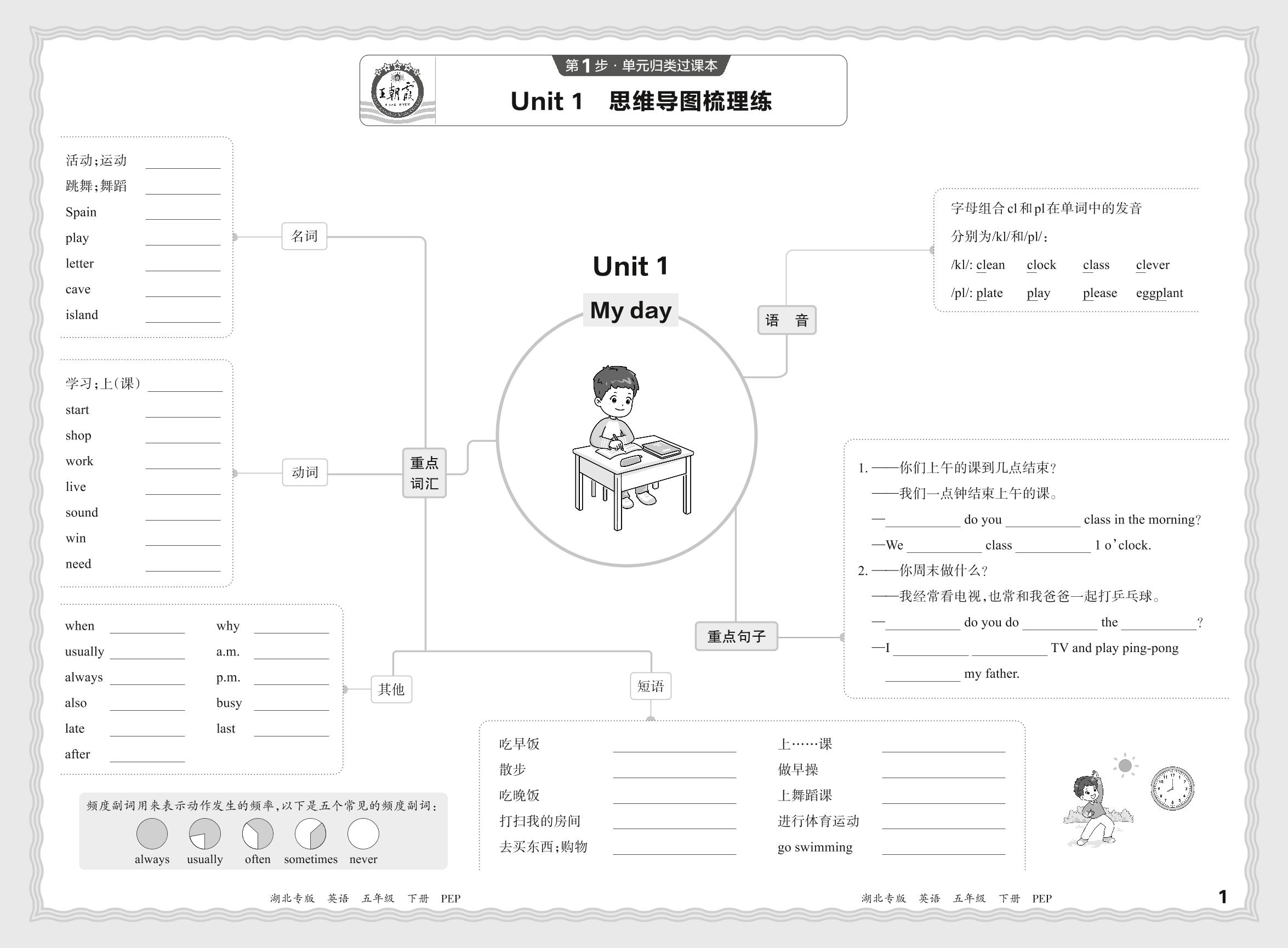 2024春下册五年级英语人教PEP版 期末过课本湖北版·单元归类复习练—Unit 1