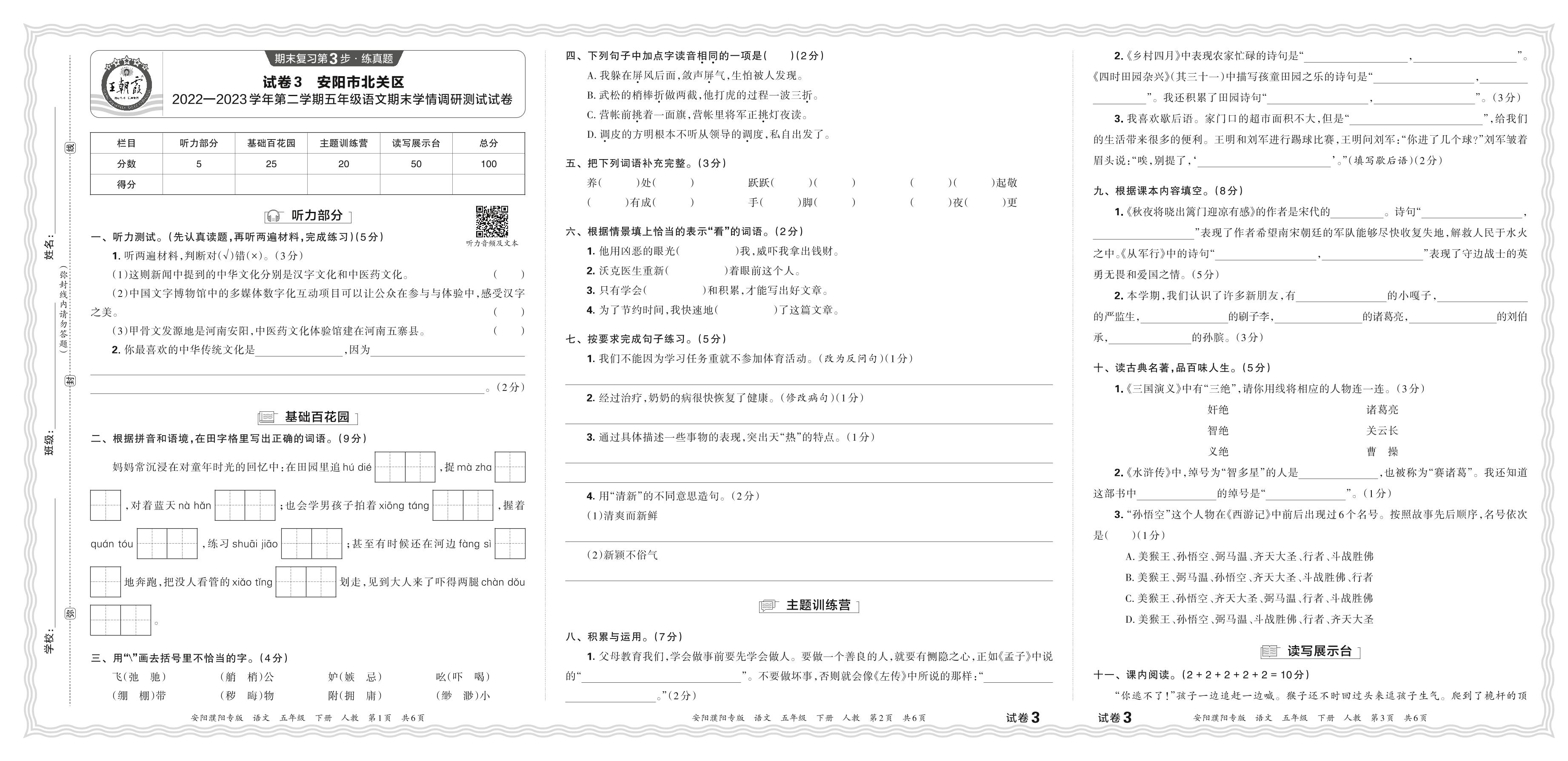 河南省安阳市北关区2022-2023学年第二学期五年级语文期末学情调研测试试卷(人教版)【3】