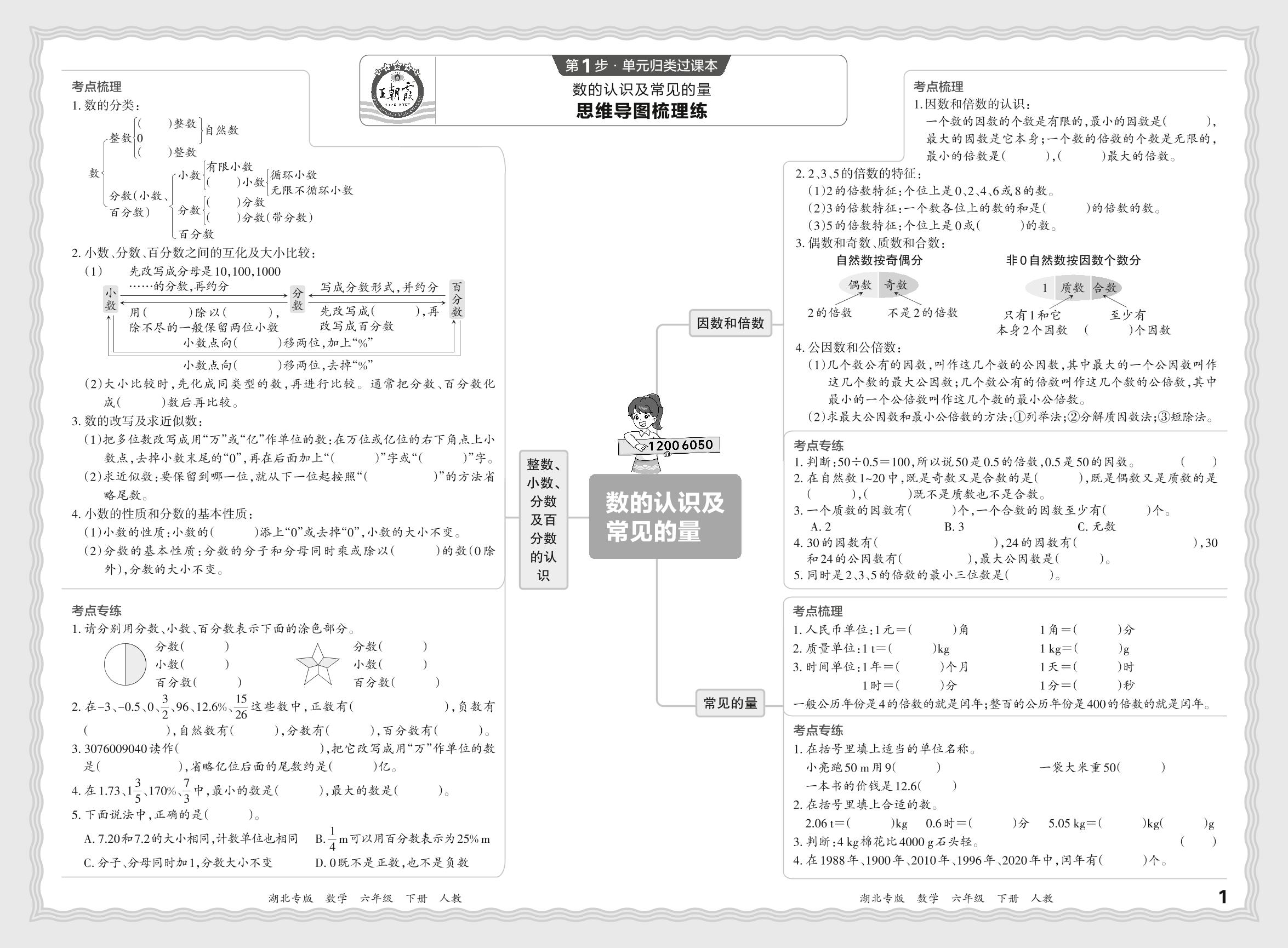 2024春下册六年级数学人教版 期末过课本湖北版·单元归类复习练——数的认识及常见的量【1】
