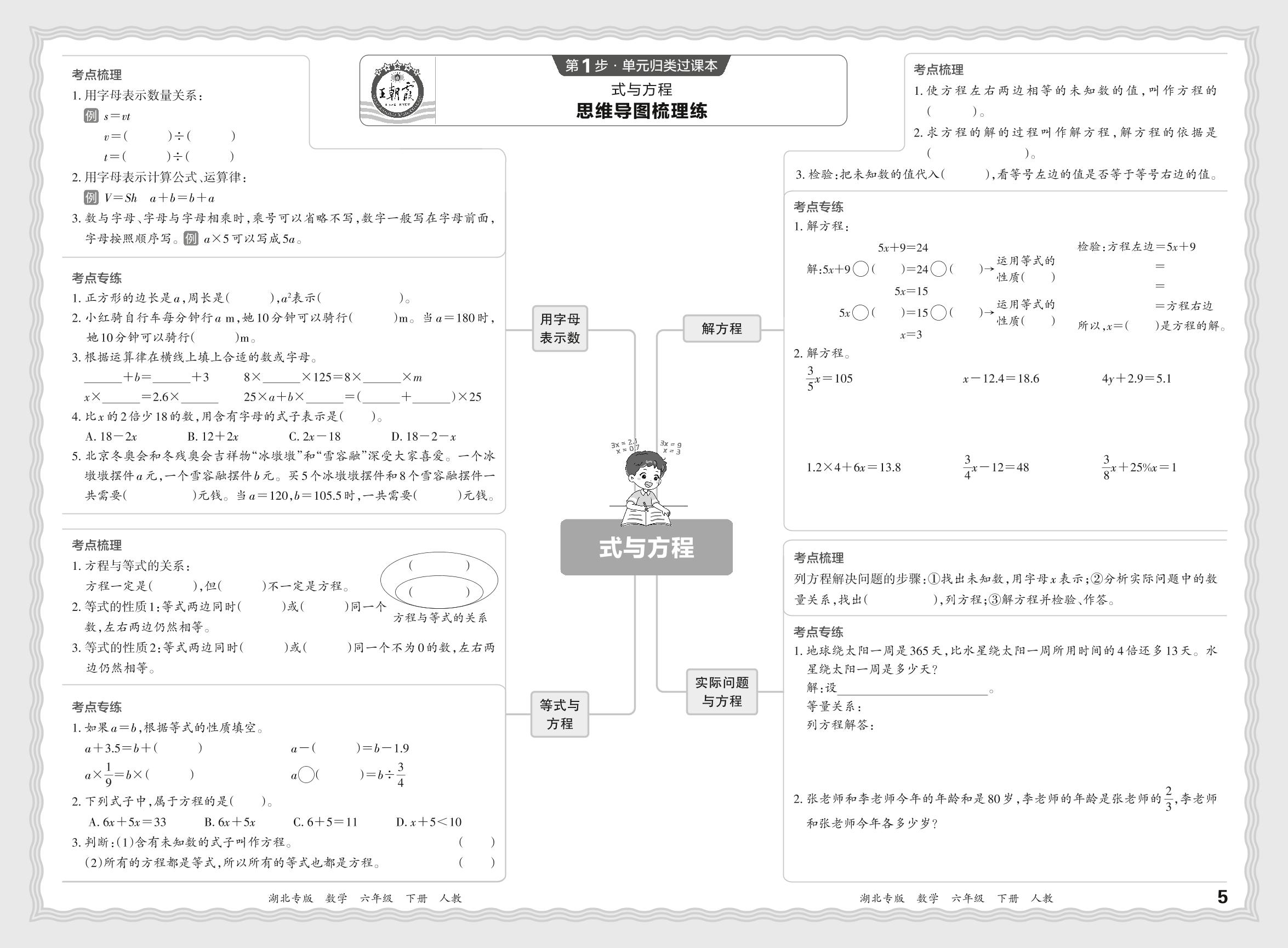 2024春下册六年级数学人教版 期末过课本湖北版·单元归类复习练——式与方程【3】