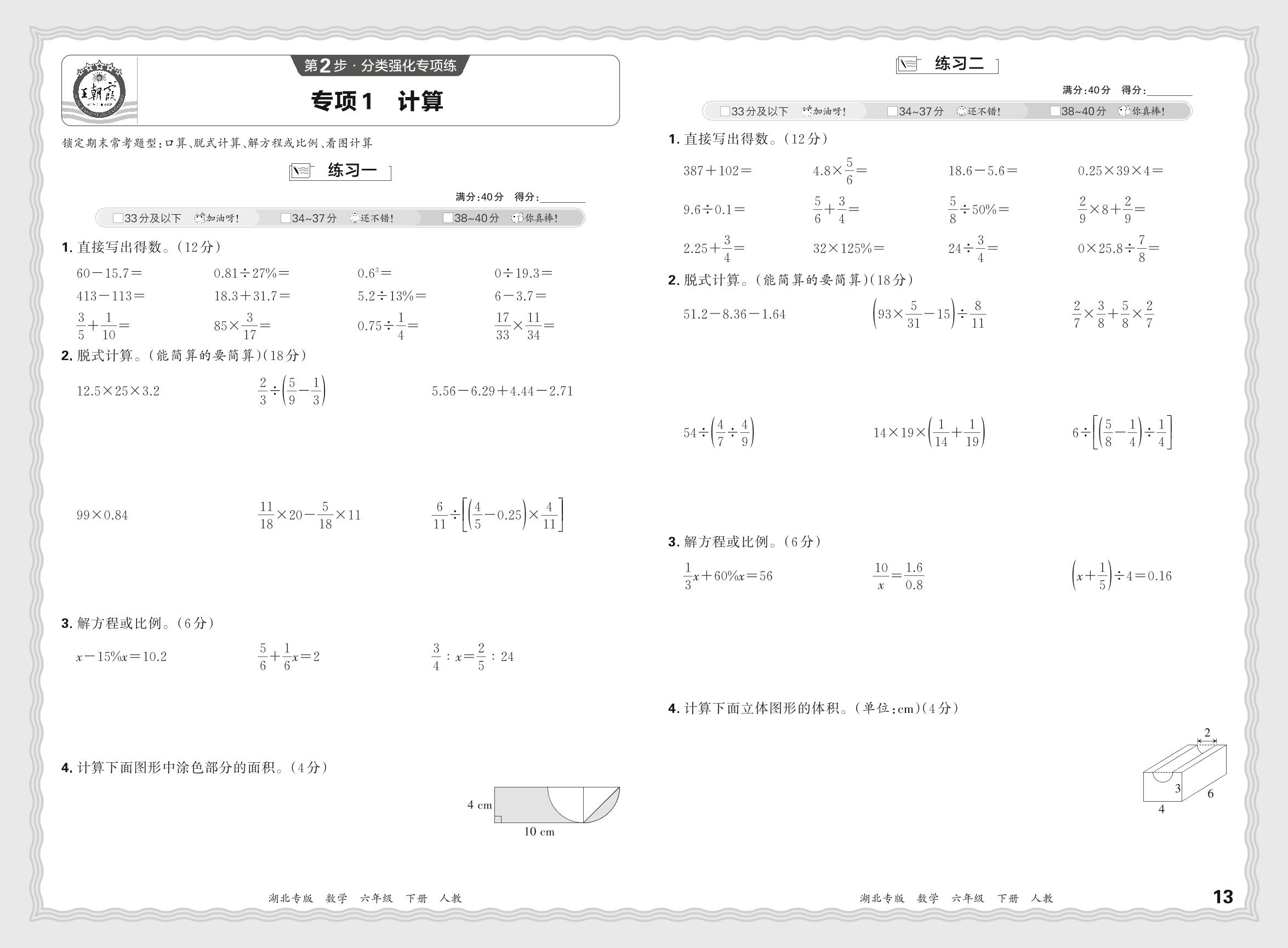 2024春下册六年级数学人教版 期末专项卷湖北版·计算【1】
