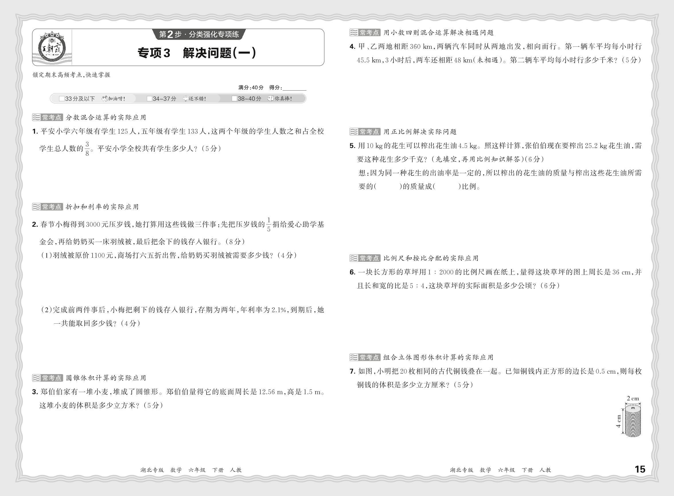 2024春下册六年级数学人教版 期末专项卷湖北版·解决问题(一)【3】