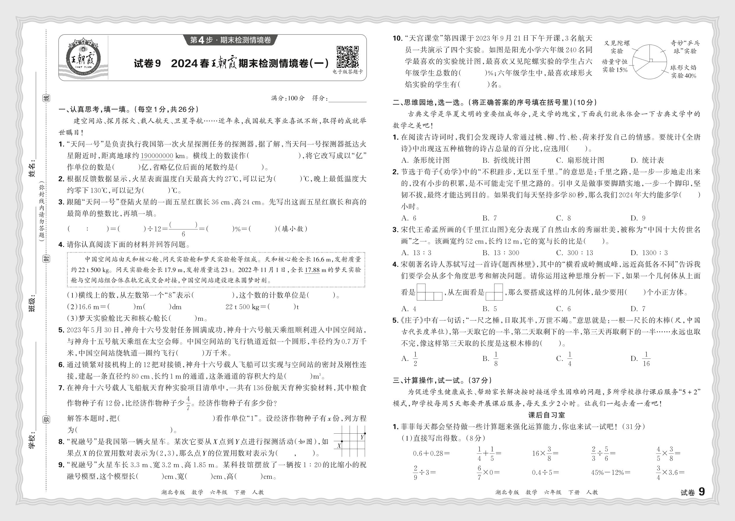 2024春下册六年级数学人教版 湖北王朝霞期末检测情境卷(一)