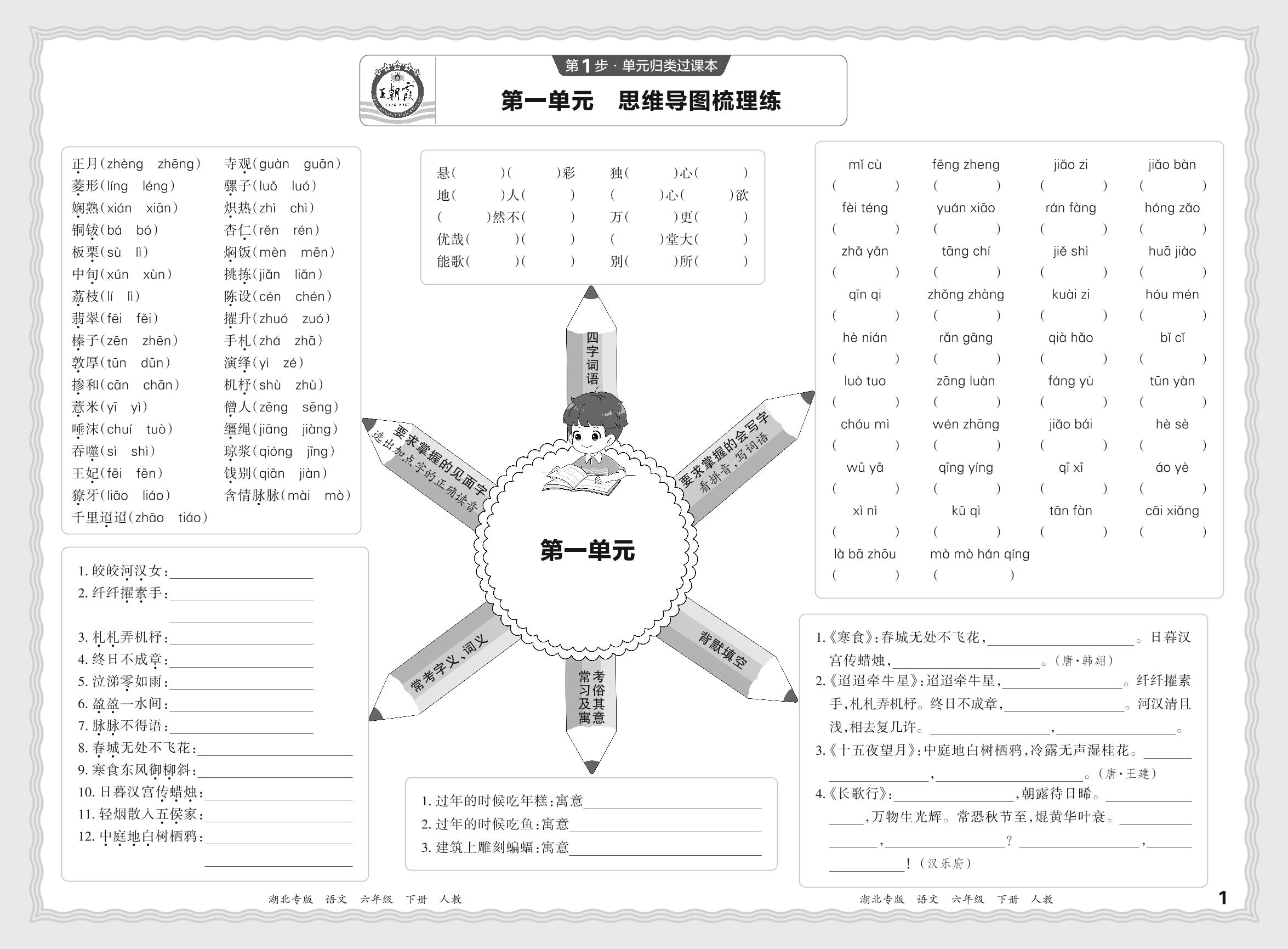 2024春下册六年级语文人教版 期末过课本湖北版·第一单元 基础知识梳理练