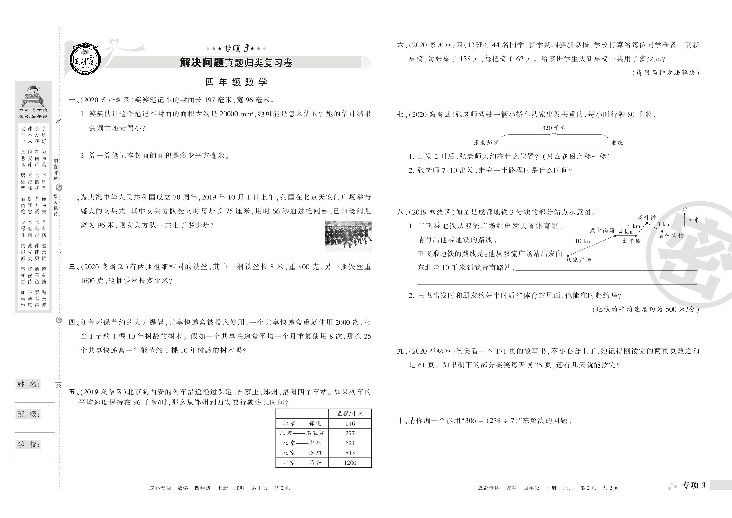 王朝霞期末专项卷——解决问题真题归类复习、新颖题速递:生活与数学四年级上册数学(北师版)_R210804141114【0】