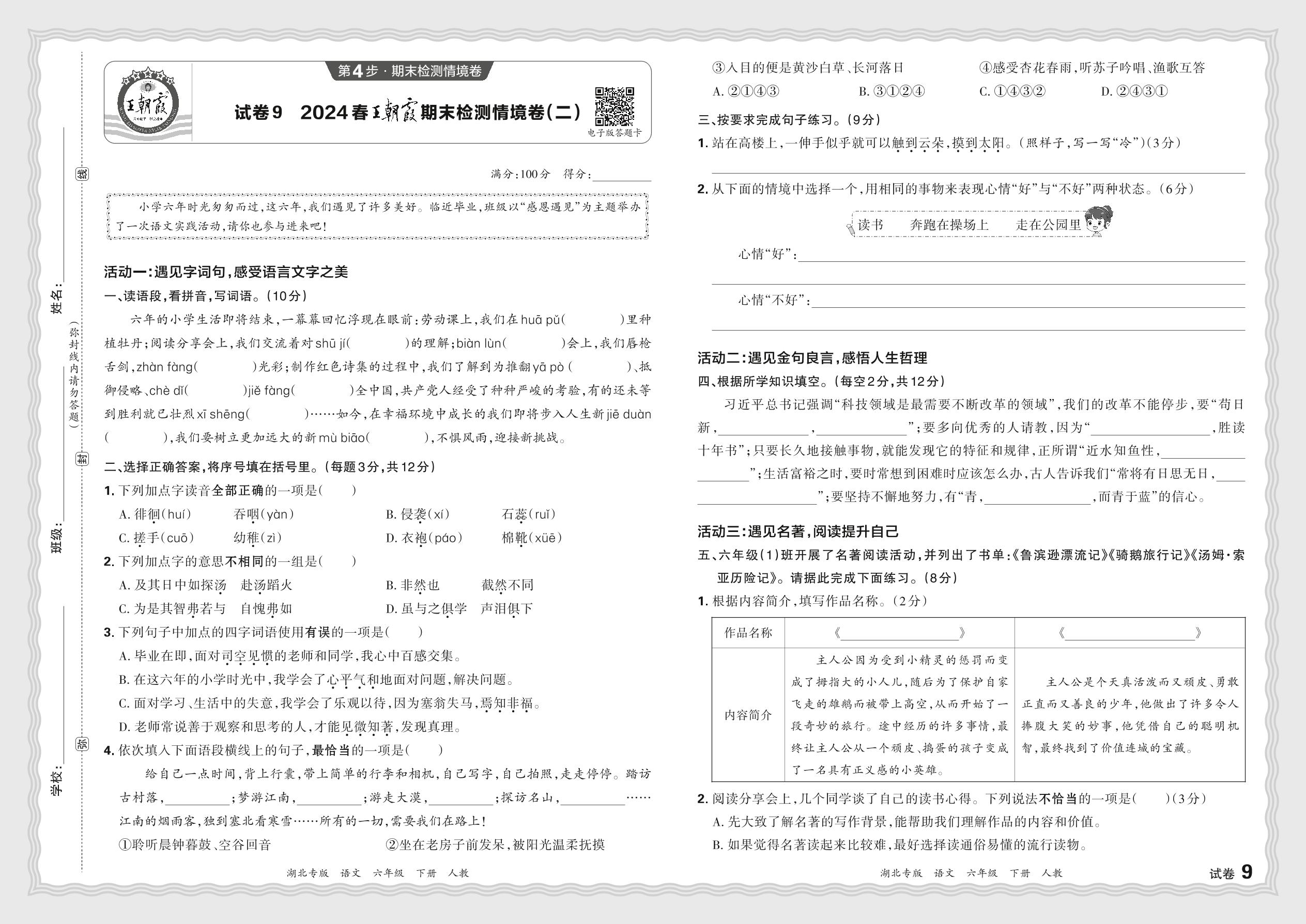 2024春下册六年级语文人教版 湖北王朝霞期末检测情境卷(二)