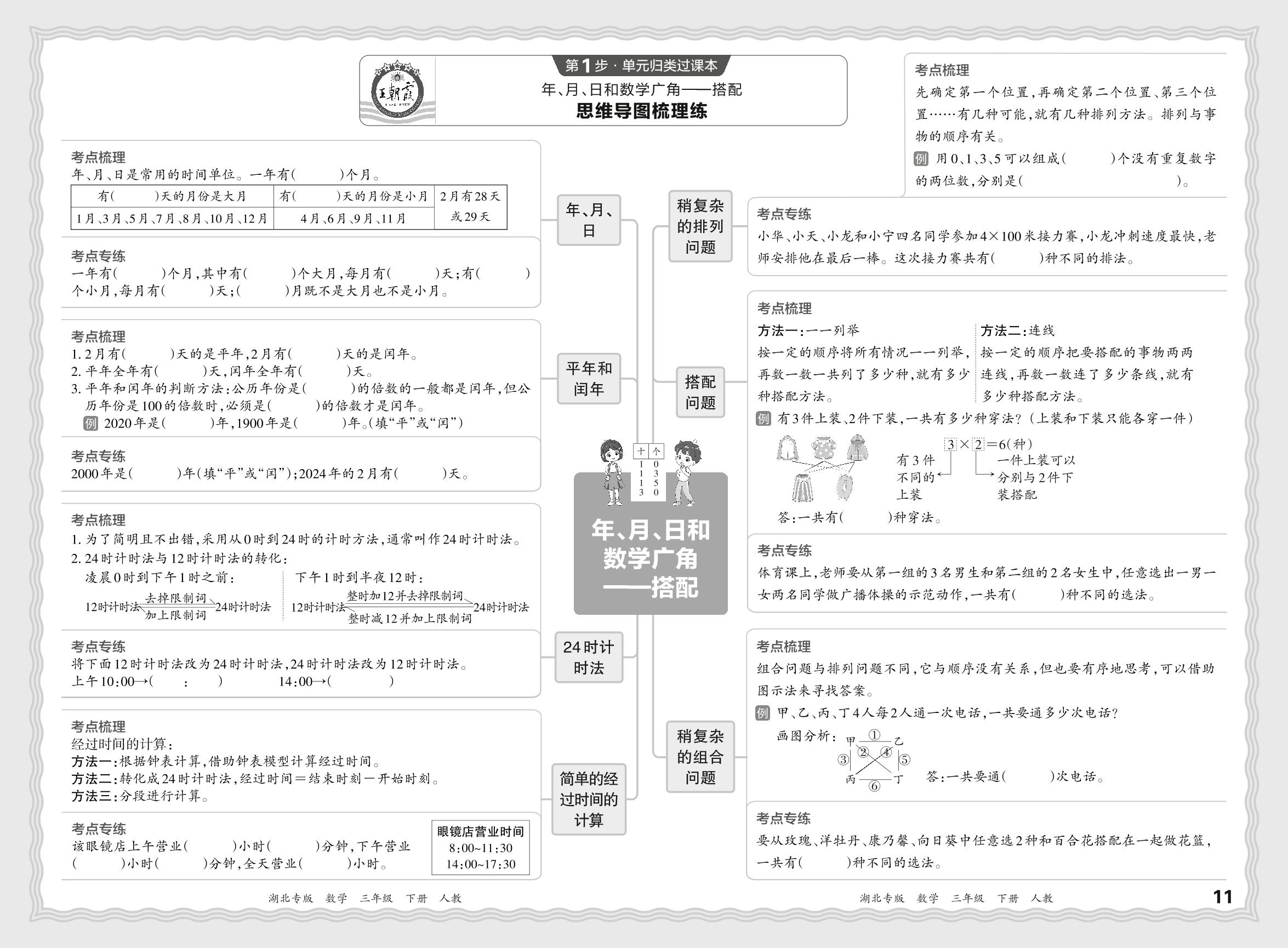 2024春下册三年级数学人教版 期末过课本湖北版·单元归类复习练——年、月、日和数学广角——搭配【6】