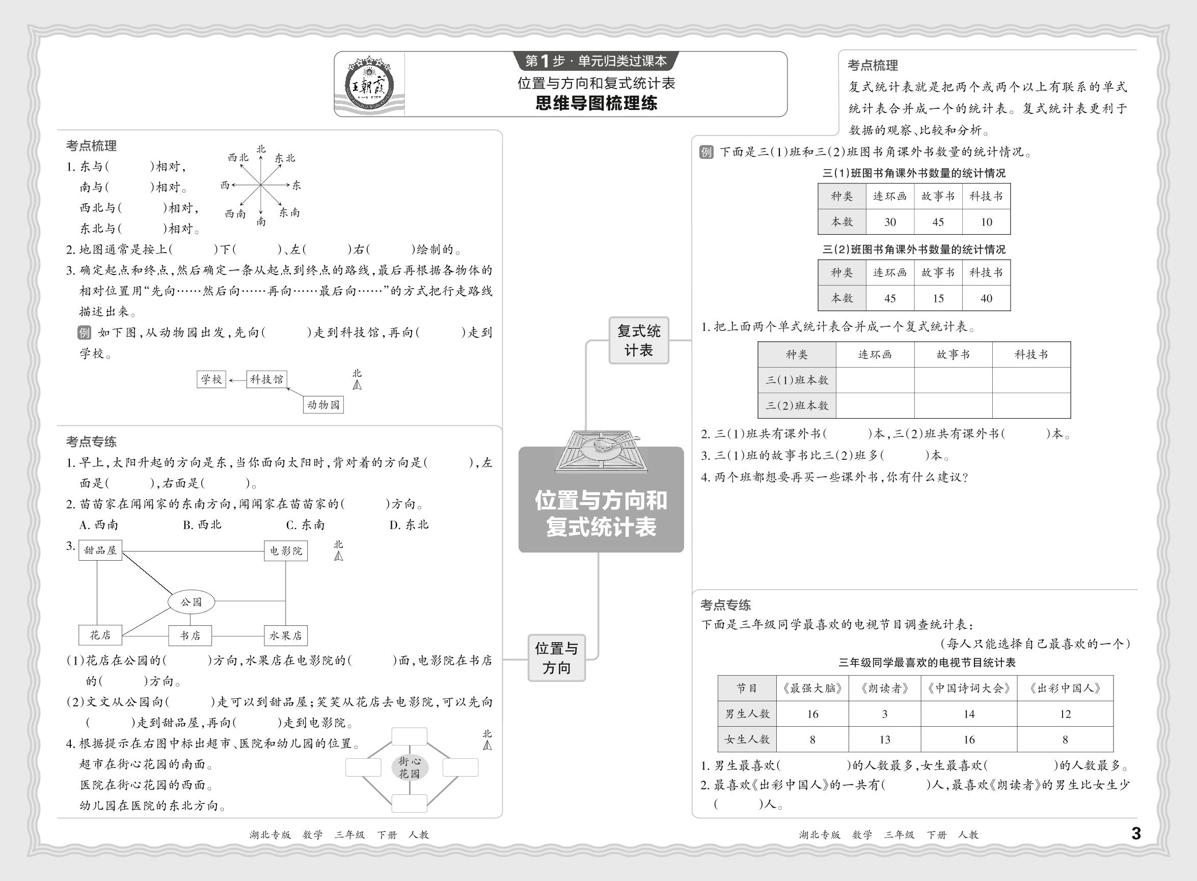 2024春下册三年级数学人教版 期末过课本湖北版·单元归类复习练——位置方向和复式统计表【2】