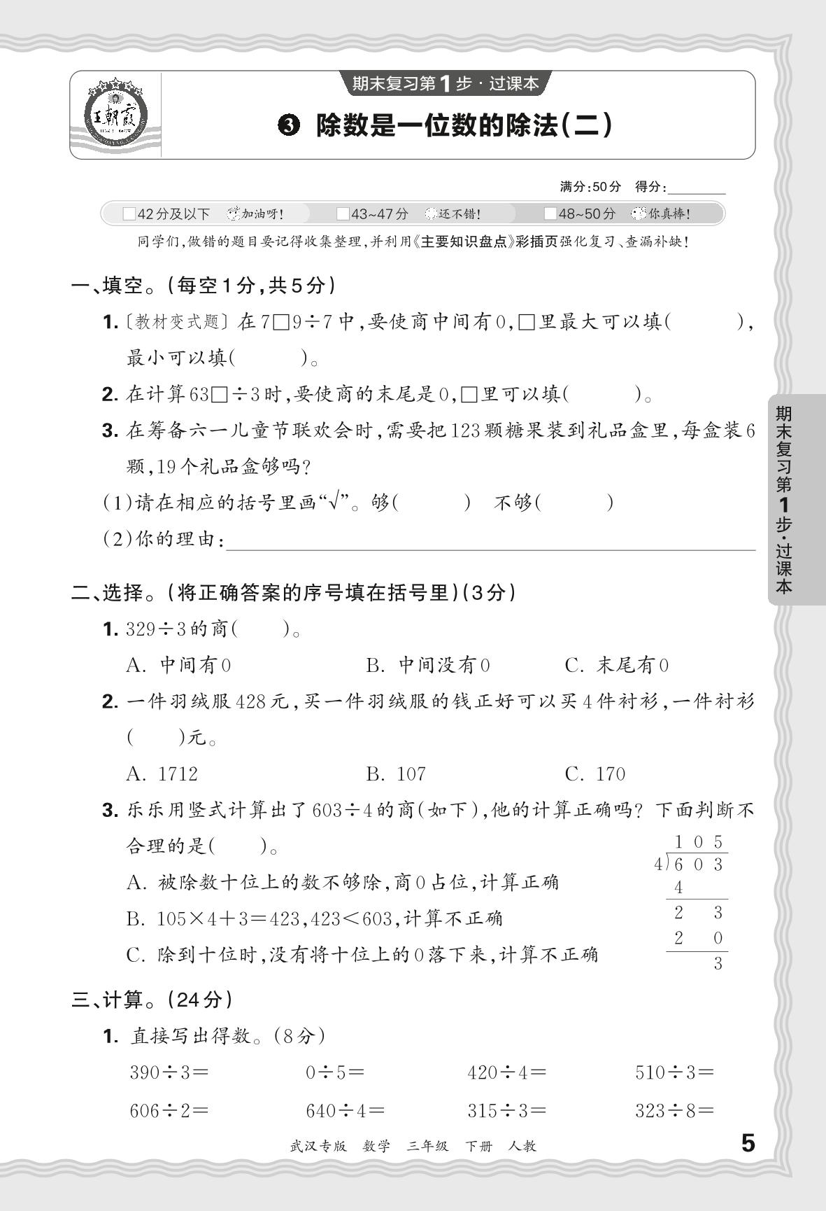 2024春下册三年级数学人教版 期末过课本武汉版·除数是一位数的除法(二)【3】