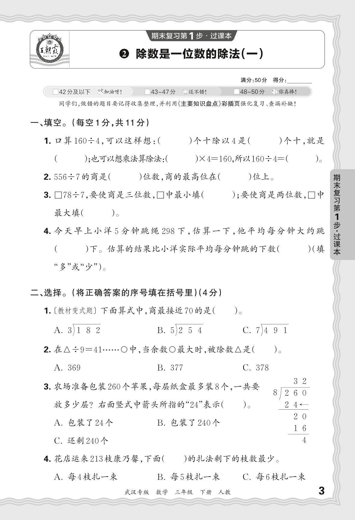 2024春下册三年级数学人教版 期末过课本武汉版·除数是一位数的除法(一)【2】