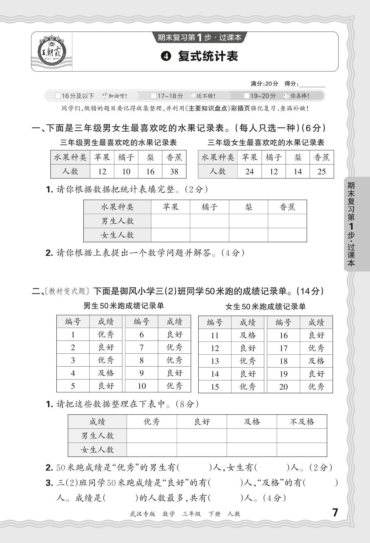 2024春下册三年级数学人教版 期末过课本武汉版·复式统计表【4】