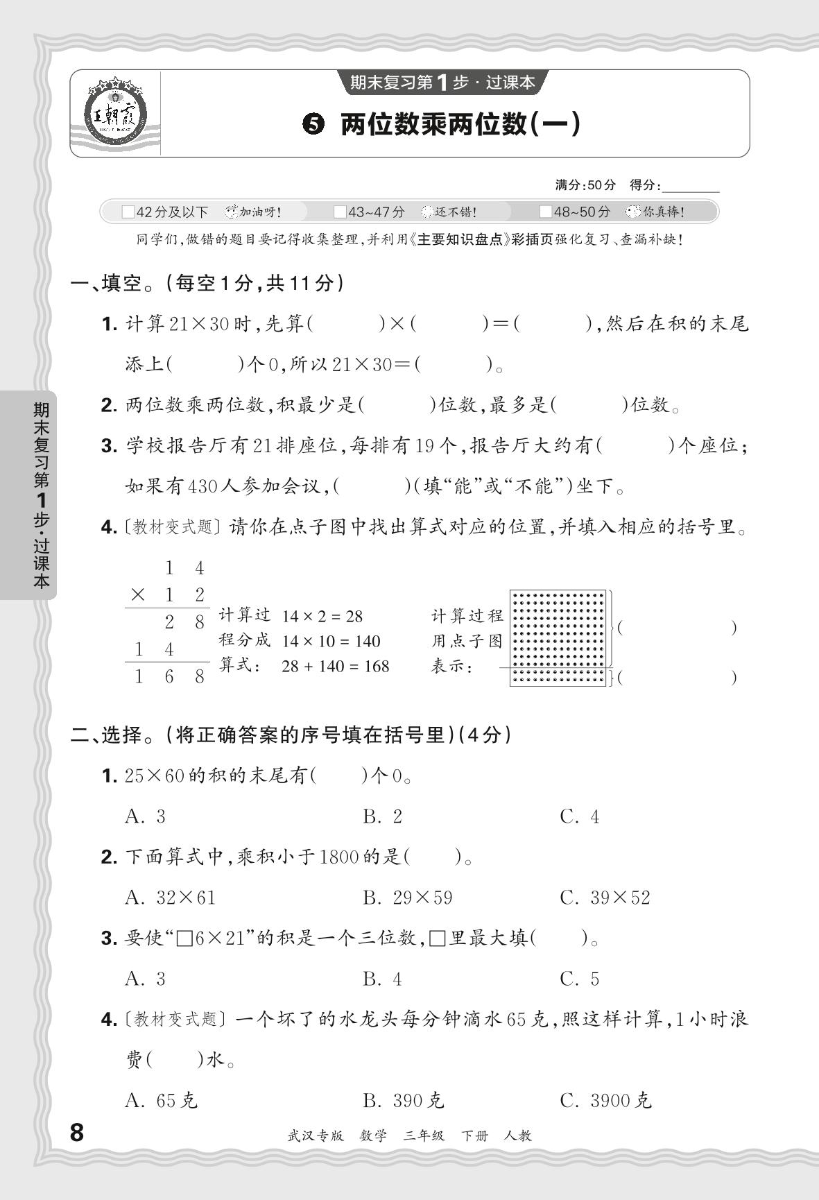 2024春下册三年级数学人教版 期末过课本武汉版·两位数乘两位数(一)【5】