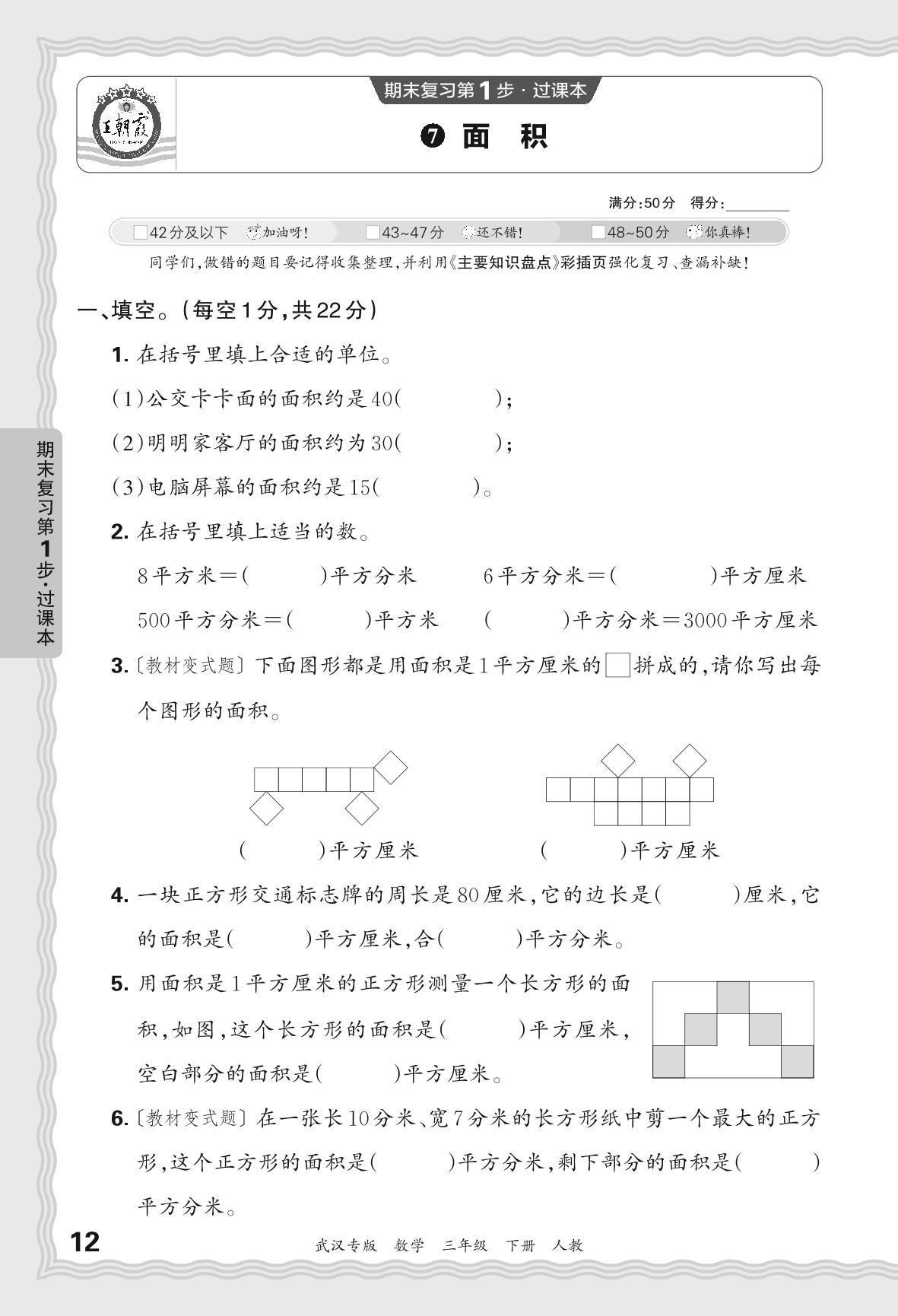 2024春下册三年级数学人教版 期末过课本武汉版·面积【7】