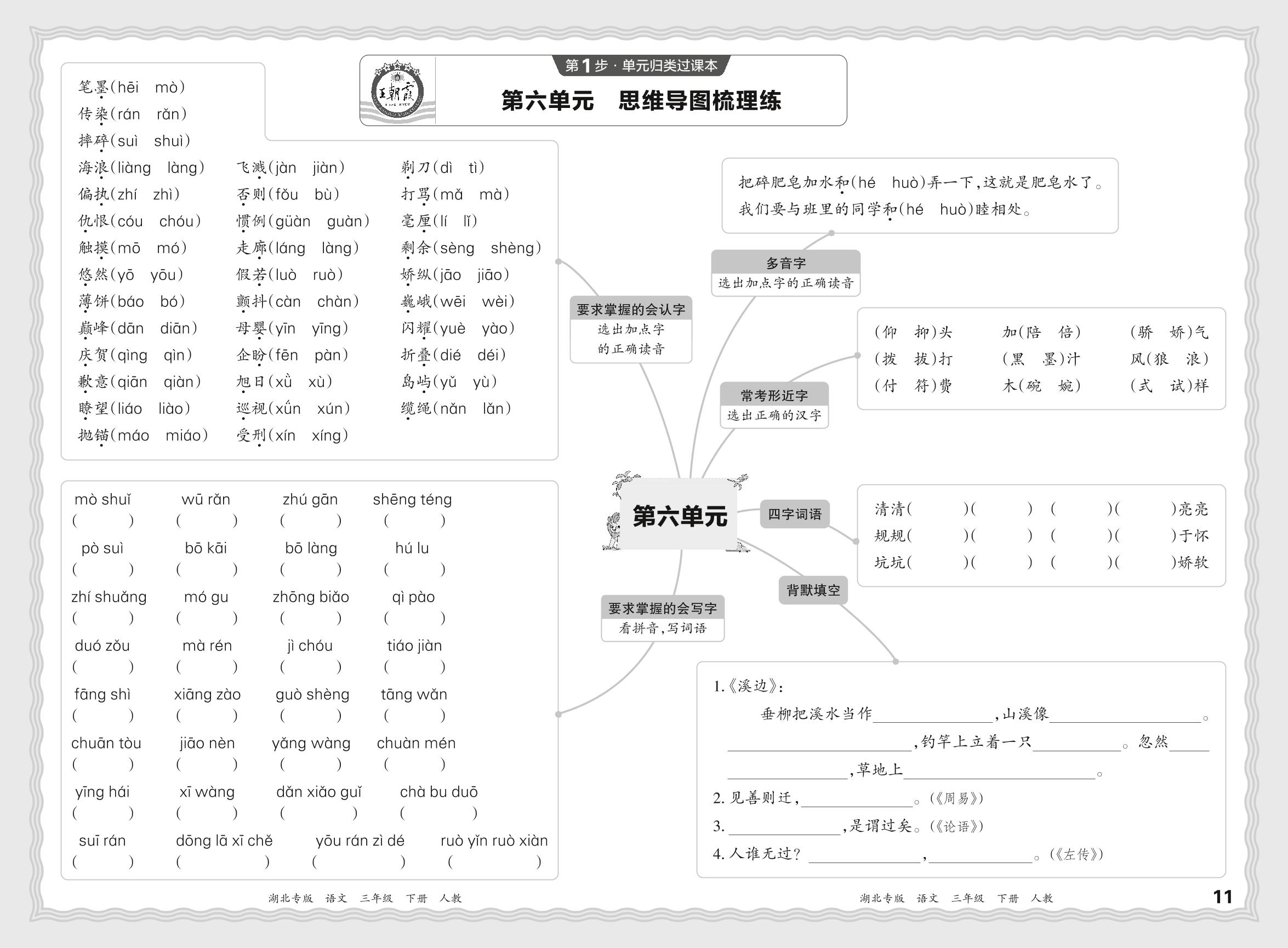2024春下册三年级语文人教版 期末过课本湖北版·第六单元 基础知识梳理练
