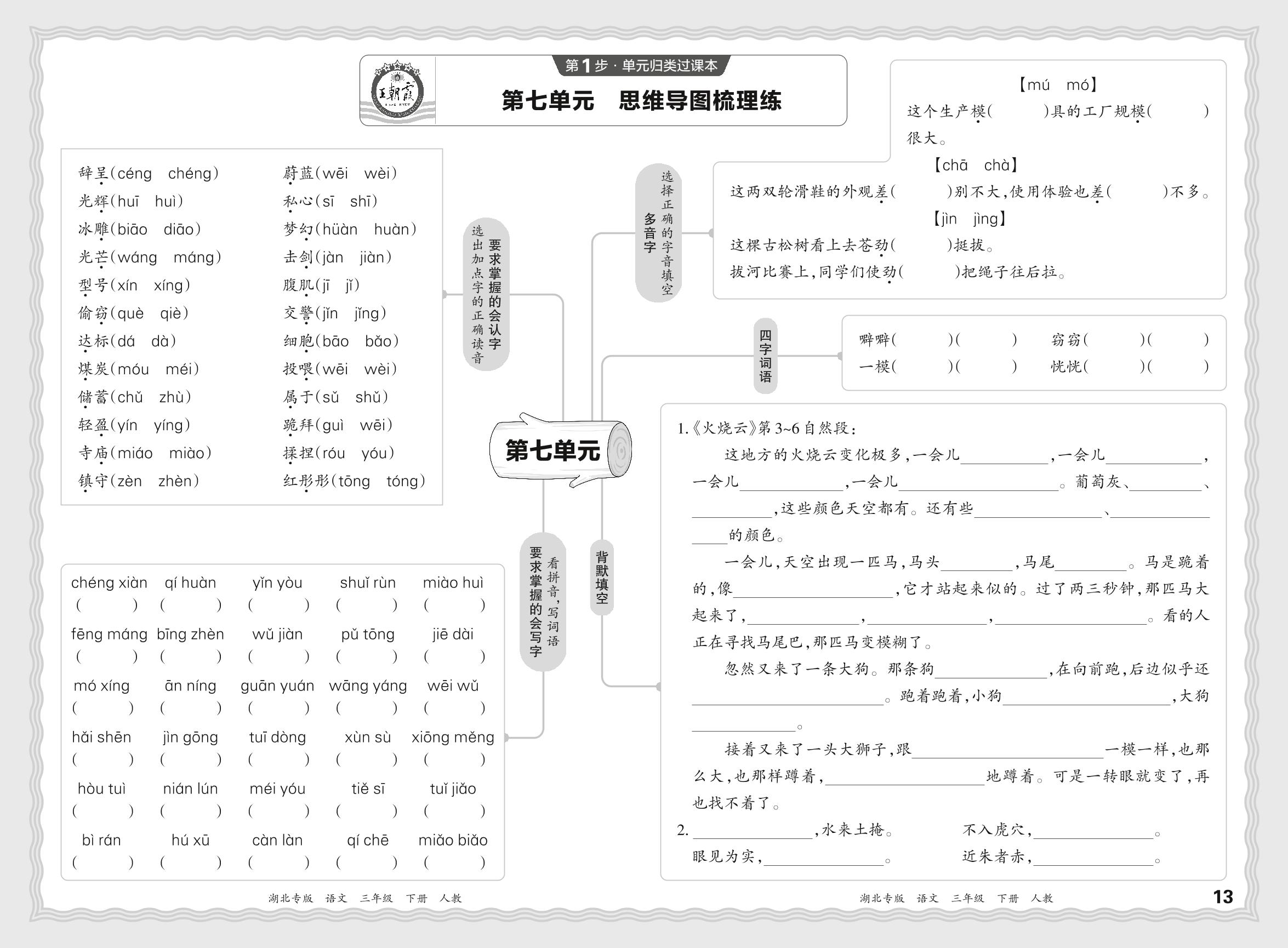 2024春下册三年级语文人教版 期末过课本湖北版·第七单元 基础知识梳理练