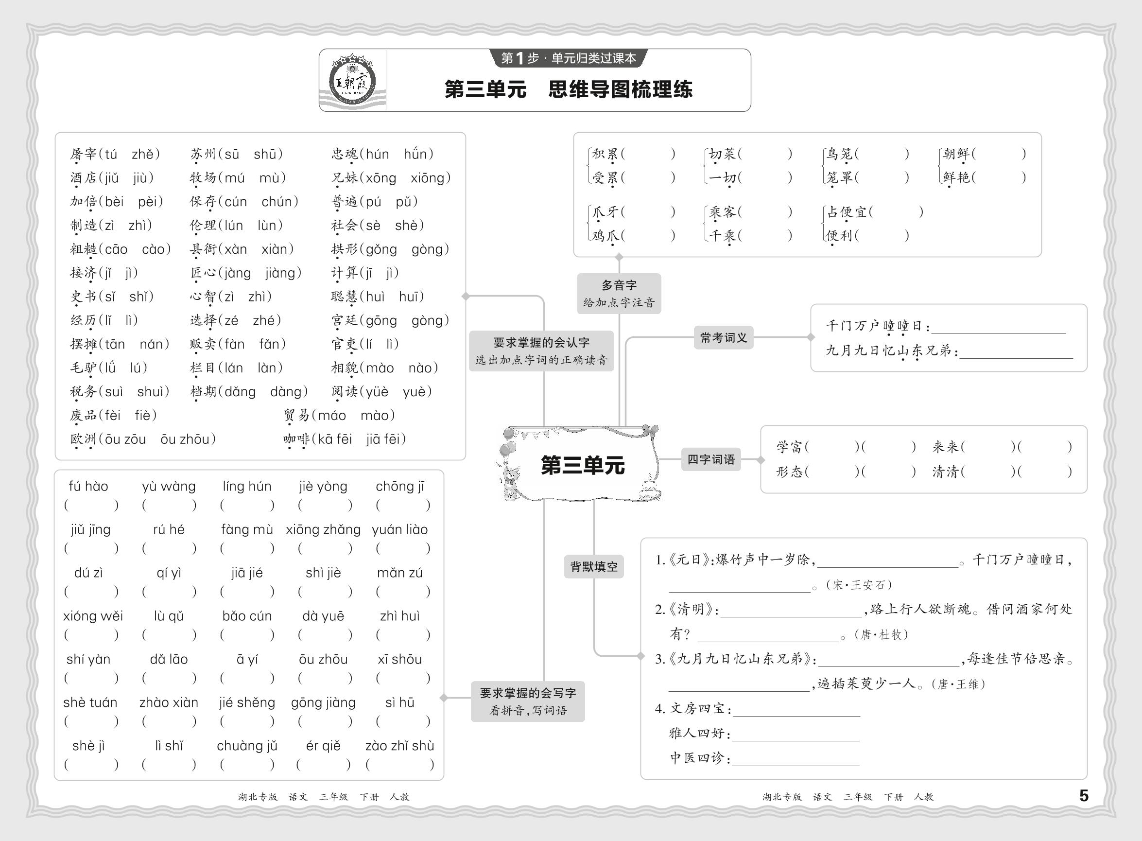 2024春下册三年级语文人教版 期末过课本湖北版·第三单元 基础知识梳理练
