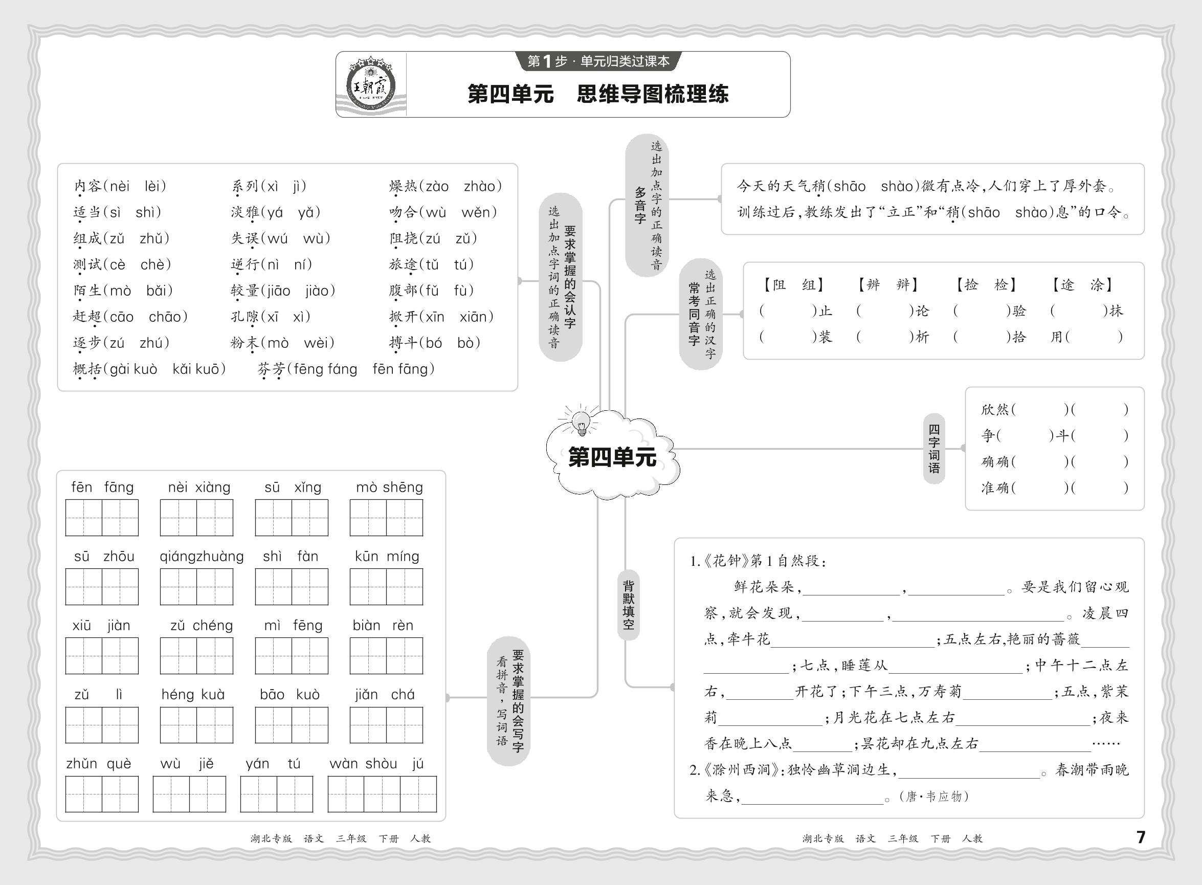 2024春下册三年级语文人教版 期末过课本湖北版·第四单元 基础知识梳理练