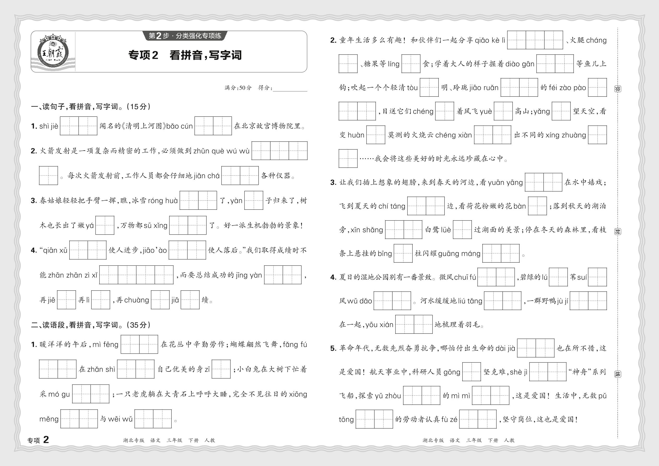 2024春下册三年级语文人教版 期末专项卷湖北版·看拼音,写词语【2】
