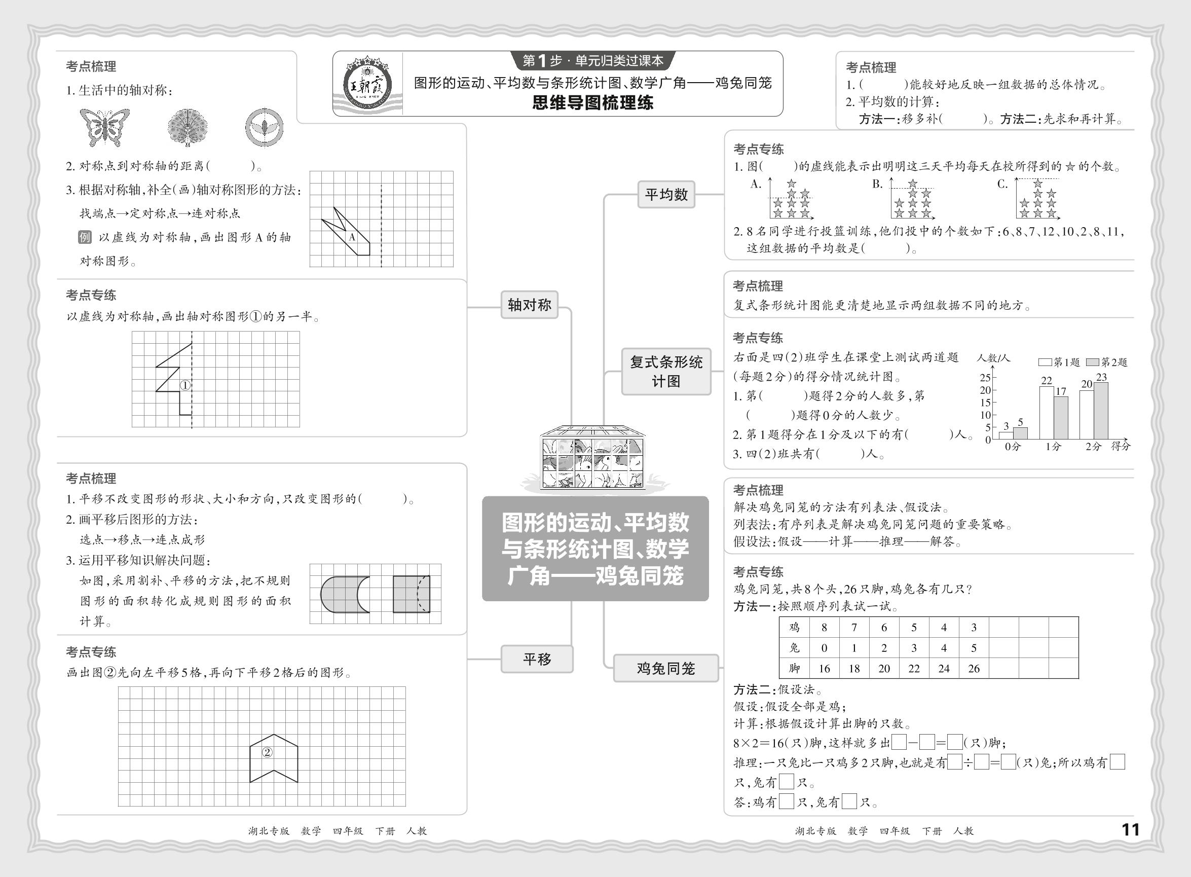 2024春下册四年级数学人教版 期末过课本湖北版·单元归类复习练——图形的运动、平均数与条件统计图、数学广角——鸡兔同笼【6】
