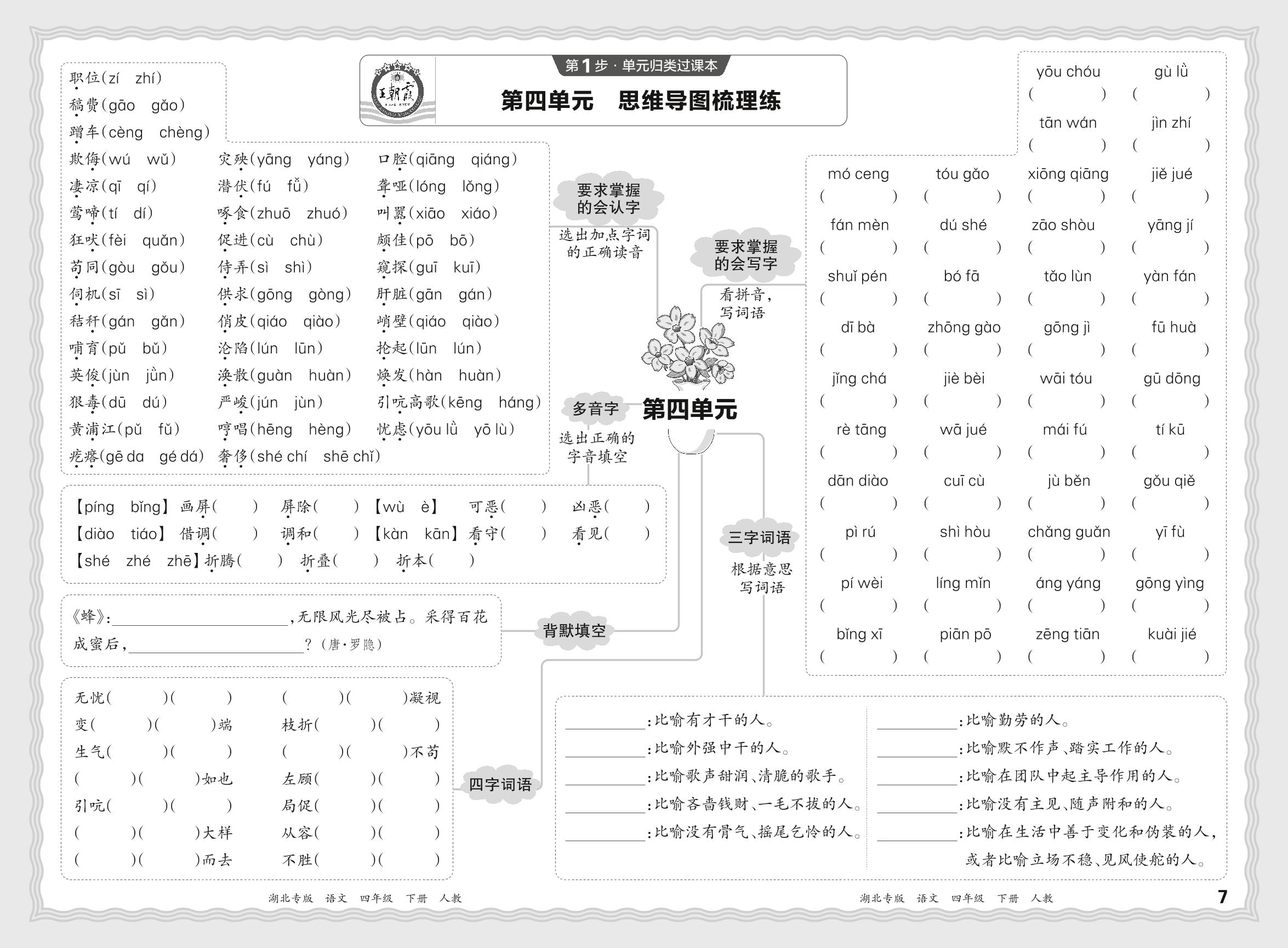 2024春下册四年级语文人教版 期末过课本湖北版·第四单元 基础知识梳理练