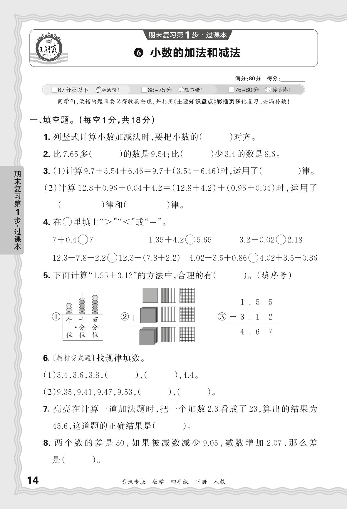 2024春下册四年级数学人教版 期末过课本武汉版·小数的加法和减法【6】