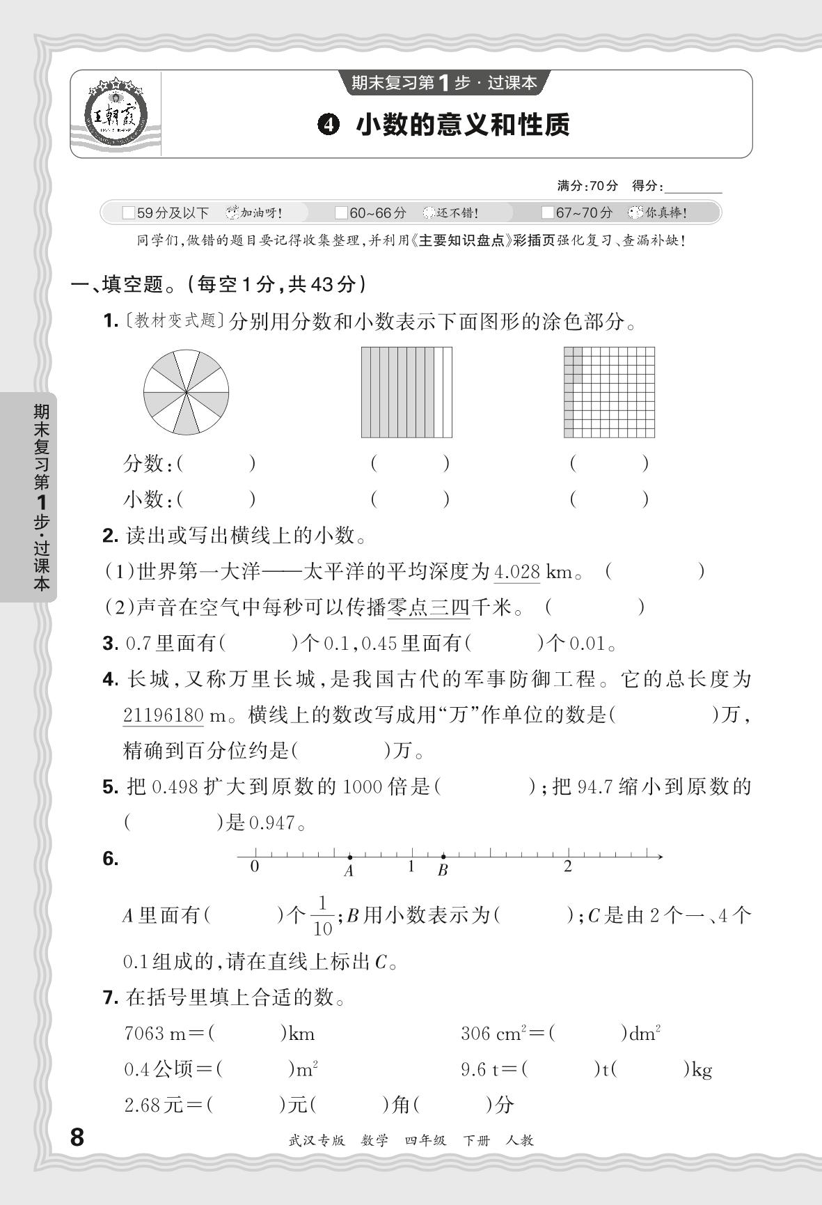 2024春下册四年级数学人教版 期末过课本武汉版·小数的意义和性质【4】