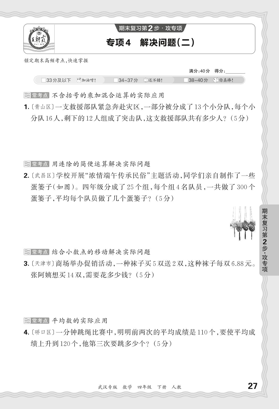 2024春下册四年级数学人教版 期末专项卷武汉版·解决问题(二)【4】